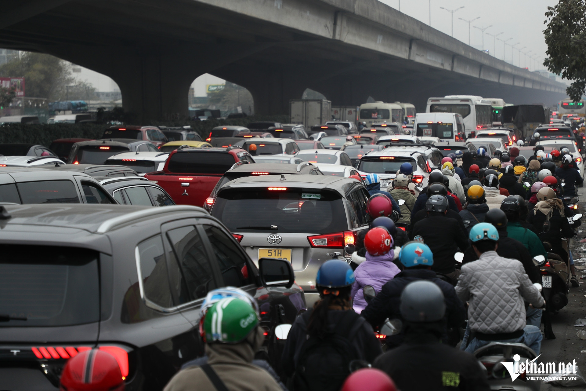 Thời điểm giáp Tết, lưu lượng phương tiện gia tăng khiến đường phố Hà Nội luôn trong tình trạng đông đúc.
