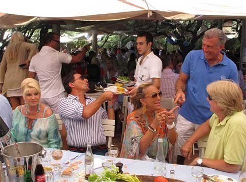 Với người tình trẻ bên cạnh, Ivana đã tham gia bữa tiệc trưa xa xỉ tại Club 55 ở Saint-Tropez hồi cuối tuần qua để kỷ niệm sinh nhật chủ một công ty máy bay tư nhân Steve Varsano.