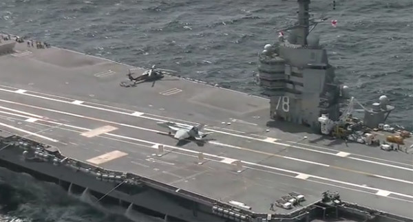 Đến cuối ngày hôm đó, siêu tàu USS Gerald R. Ford đã hoàn tất 4 lần tiếp nhận hạ cánh và cất cánh của máy bay.