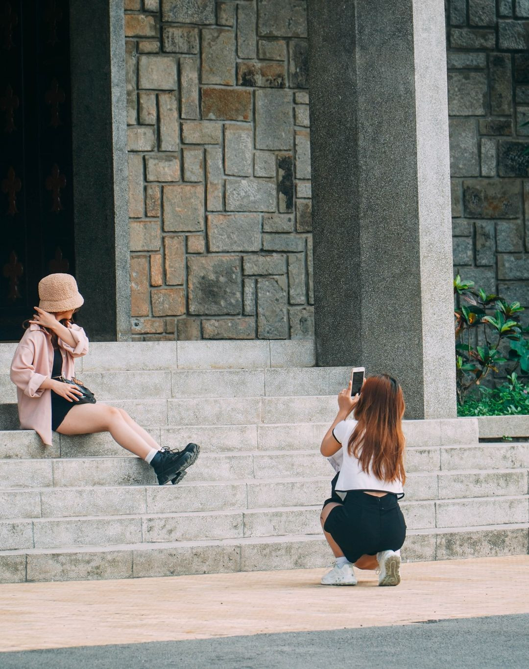 Cảnh Trịnh Công Sơn ngắm nhìn người trong mộng - Bích Diễm được quay tại chính căn nhà cũ của ông ở xứ Huế. Ngày nay, căn nhà là quán cà phê Gác Trịnh, nằm yên bình trên con phố Nguyễn Trường Tộ. Cách đó không xa là trường nữ sinh Đồng Khánh, nay là THPT Hai Bà Trưng, TP Huế. Ngôi trường được vua Khải Định đặt viên đá đầu tiên xây dựng, mang tên Đồng Khánh để thể hiện sự tôn kính của Khải Định với vua cha Đồng Khánh (Ảnh: Phim Em và Trịnh)