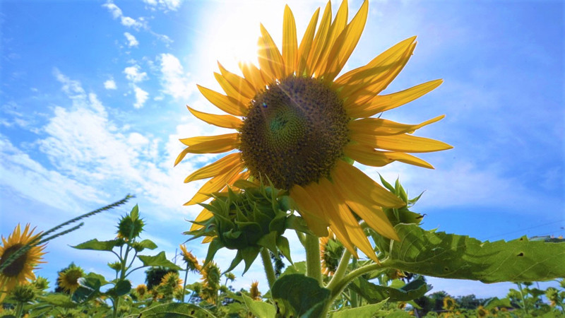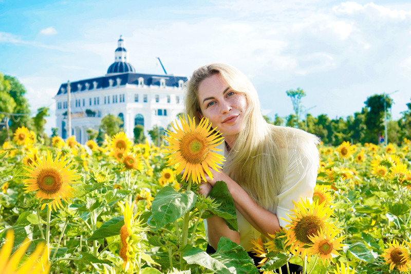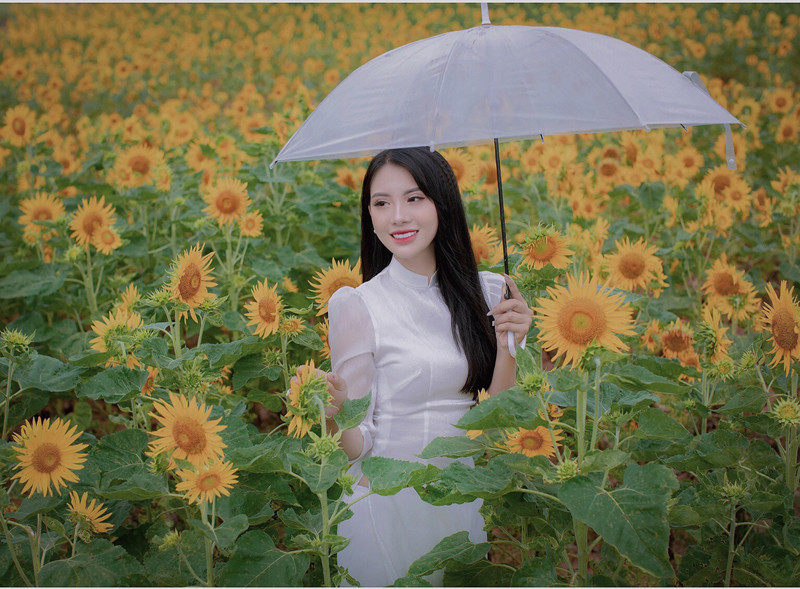 Cả không gian được nhuộm vàng rực rỡ. Những bông hoa lớn, kiêu hãnh vươn mình hướng về phía mặt trời đón ánh nắng, như vẫy gọi, chào mời du khách ghé chơi. Thời điểm tuyệt vời nhất để ngắm hoa là từ 7 - 9 giờ sáng, 14 - 17 giờ chiều.