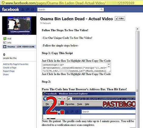 Hàng loạt người dùng Facebook nhanh chóng trở thành nạn nhân của mã độc vì click vào các liên kết dẫn đến video clip về cái chết của Bin Laden.