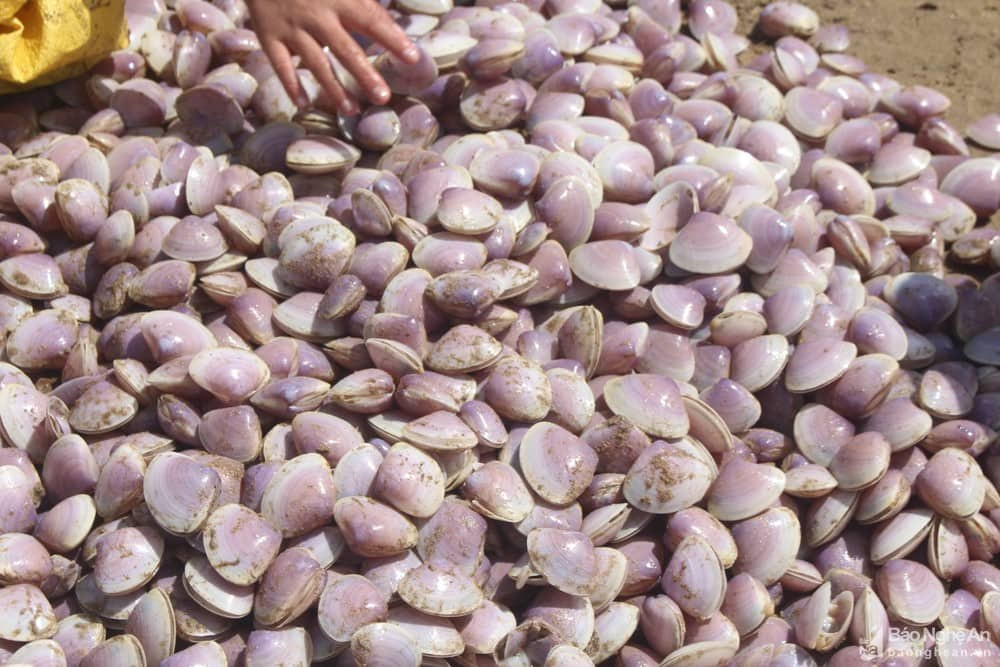 Có nhiều gia đình đã nhặt được hàng tạ ngao. Ngao sau khi người dân nhặt lên, bán lại với giá 10.000-20.000 đồng/kg.