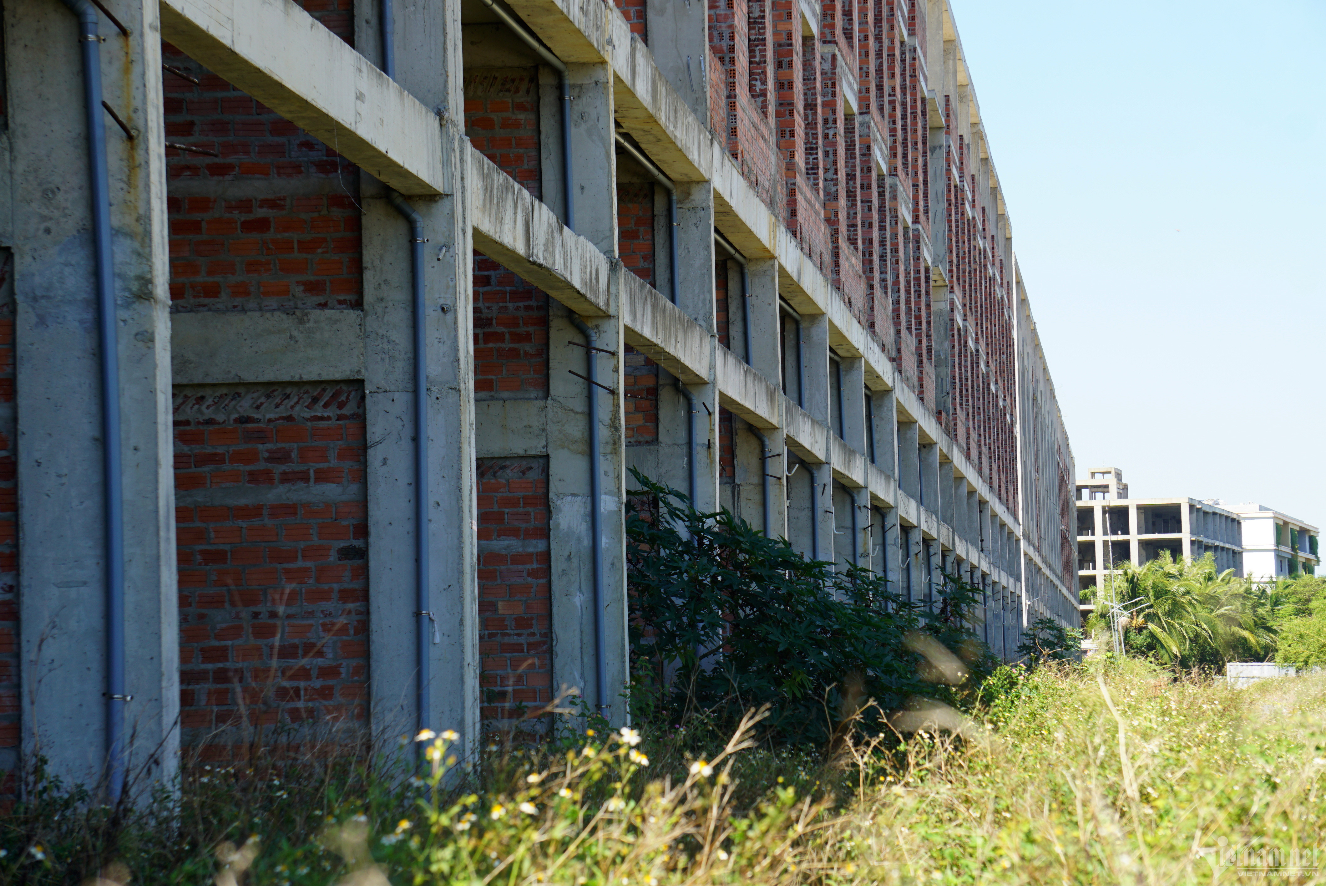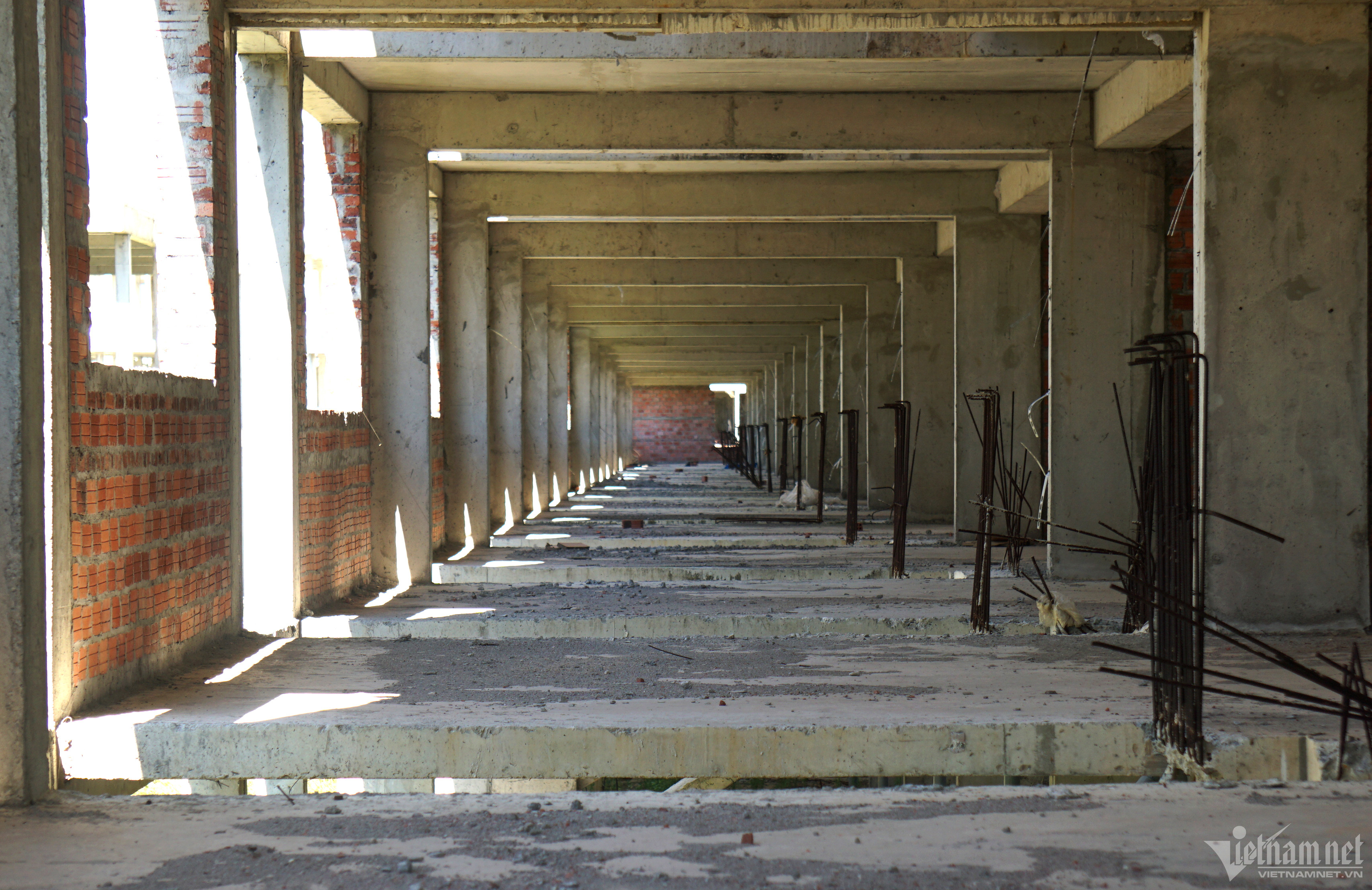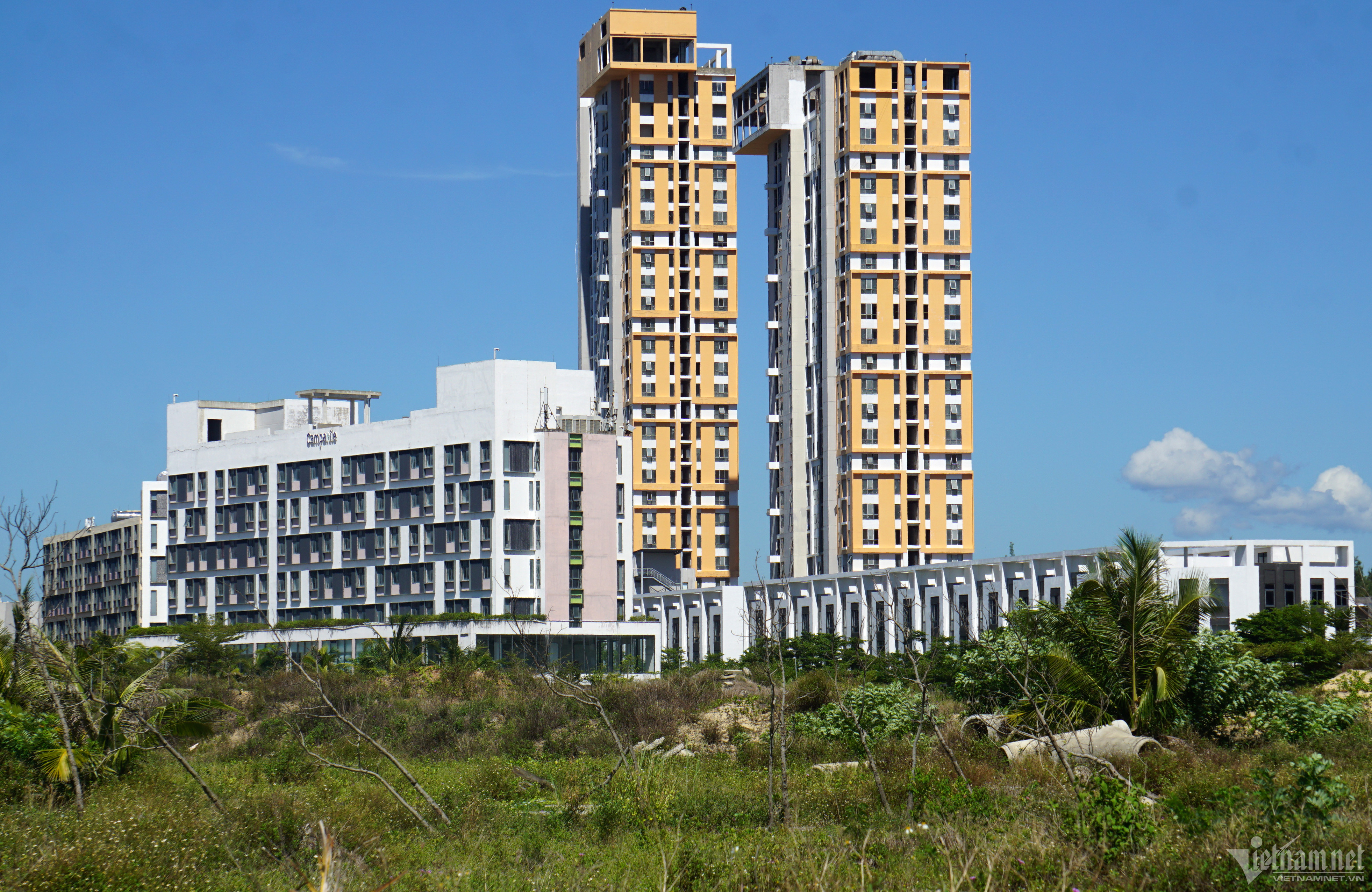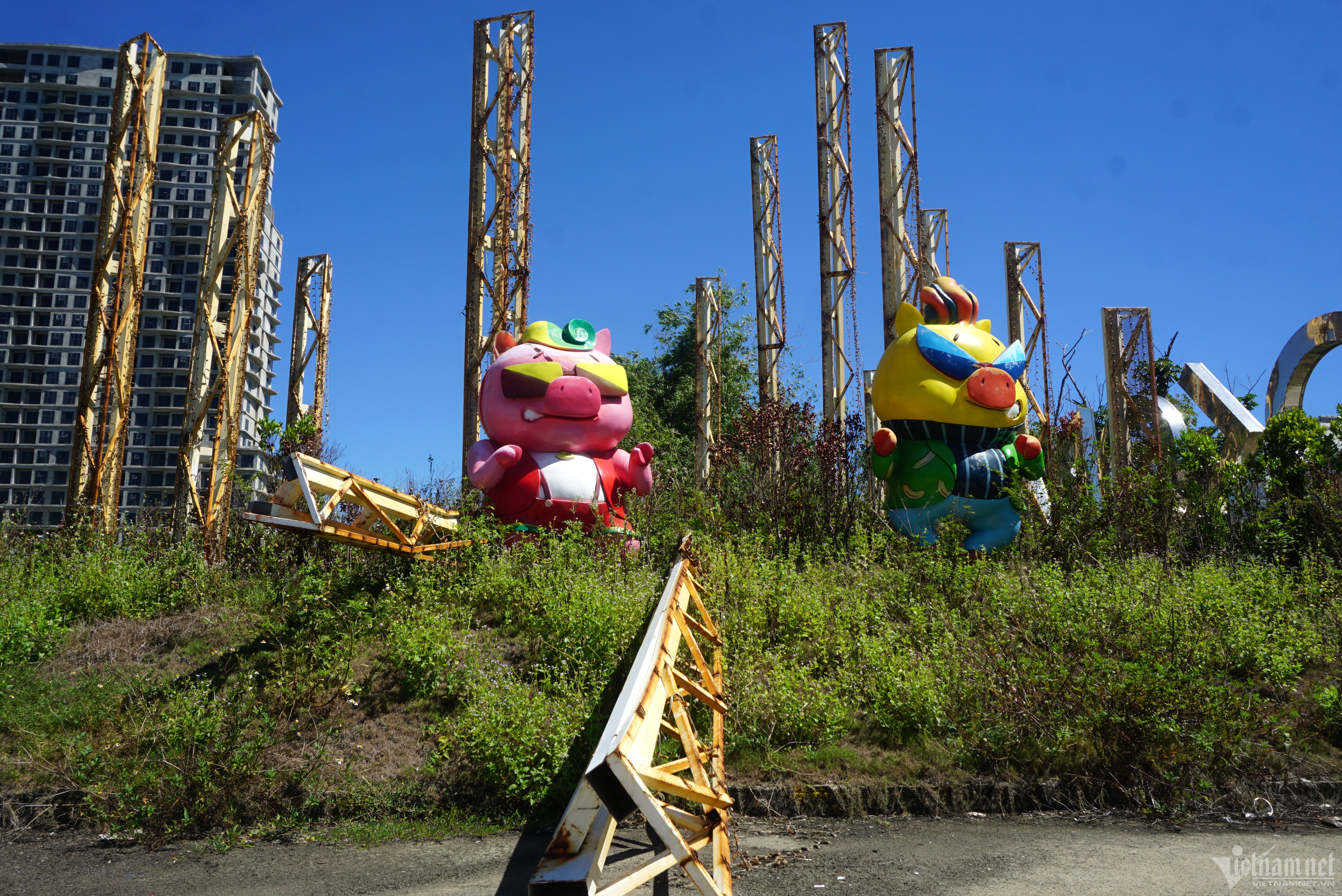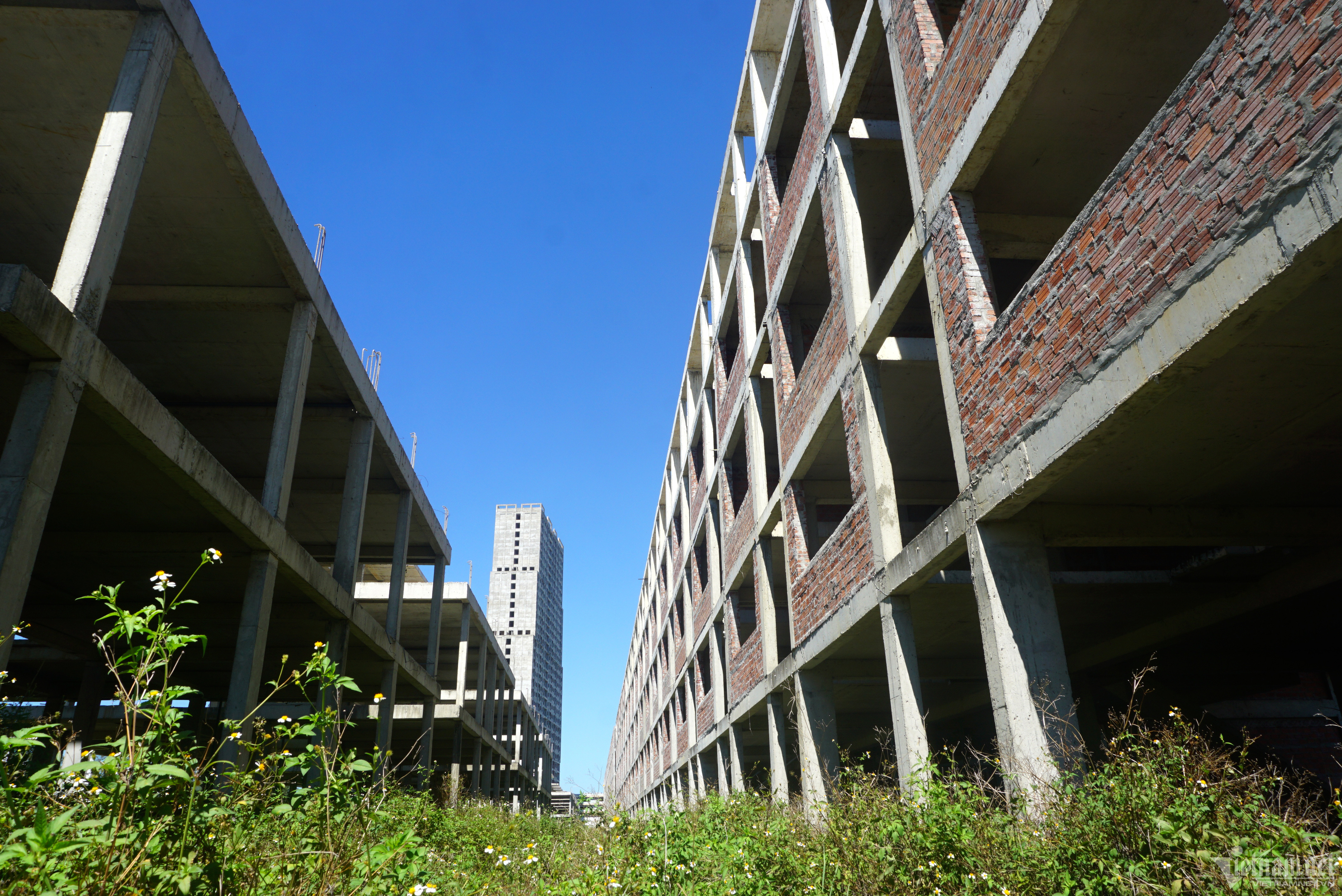 Nhiều dãy nhà thuộc dự án xây dựng dở dang bỏ không nhiều năm nay, sắt thép hoen gỉ, khung cảnh trở nên hoang tàn.Cỏ dại mọc um tùm, trở thành nơi trú ngụ của rắn rết, chuột bọ.Tổ hợp nhà cao tầng hoàn thiện phần bên ngoài nhưng bỏ không thời gian dài nên đang xuống cấp.Vật liệu xây dựng bỏ lại ngổn ngang sau khi nhà thầu rút đi.Siêu dự án đình đám này từng được kỳ vọng sẽ góp phần phát triển kinh tế, du lịch của TP Đà Nẵng giờ trong cảnh hoang tàn.Một cánh cổng chính nằm trên tuyến đường Trường Sa được chủ đầu tư dùng tôn đóng kín, phía trong trở thành nơi tập kết các loại vật liệu xây dựng, đồ dùng, sắt thép hư hỏng vứt ngổn ngang.