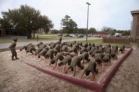 Các tân binh đang luyện tập trên cát tại Parris Island, Nam Carolina ngày 27/2.