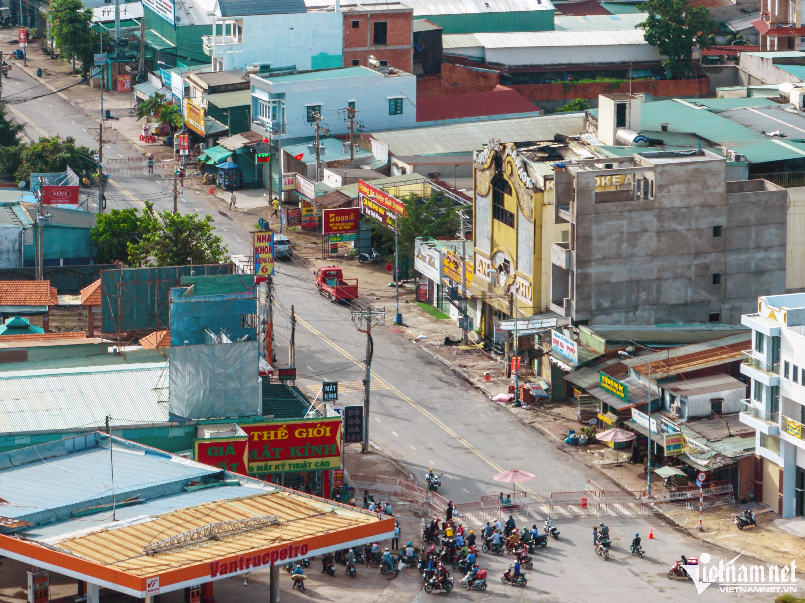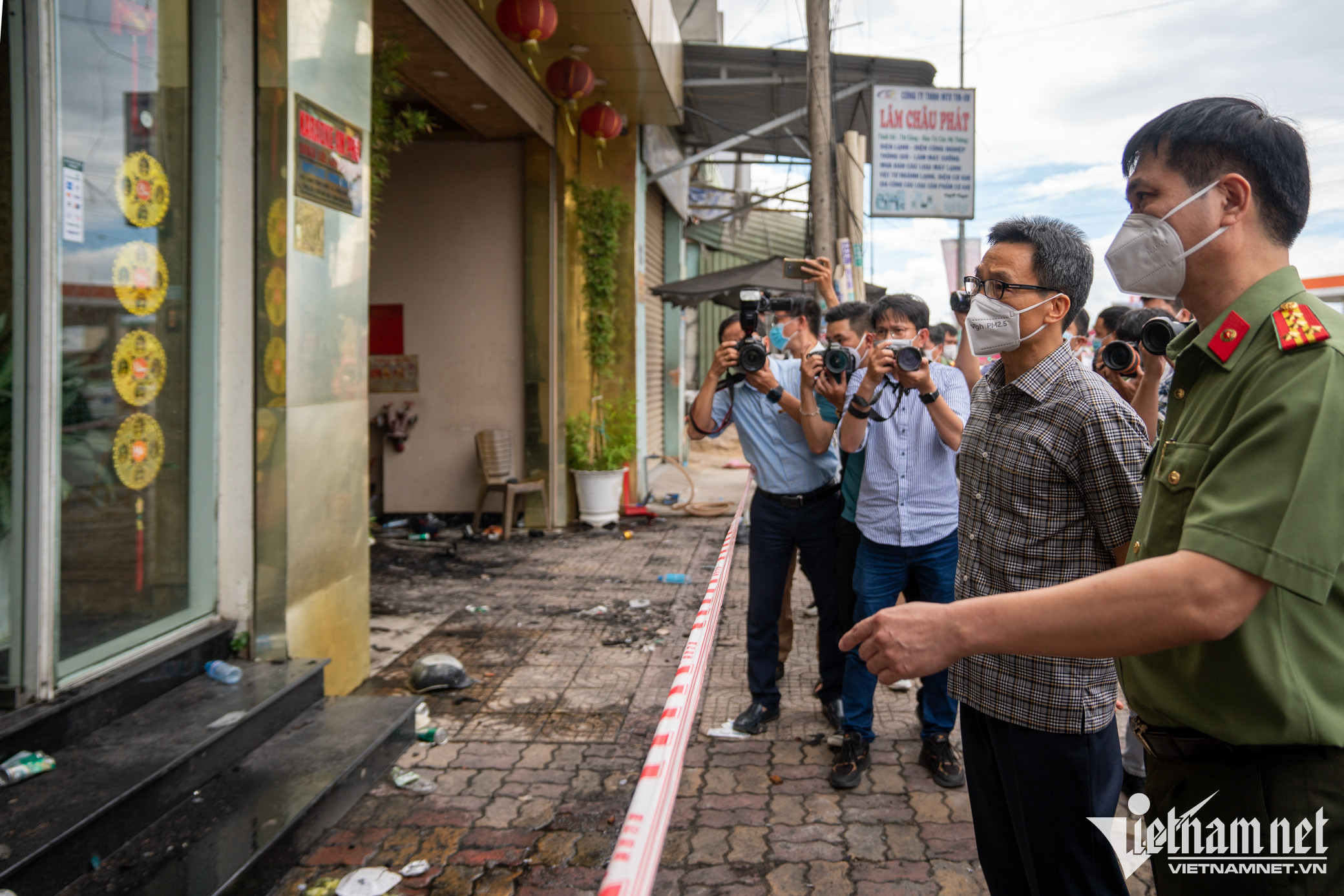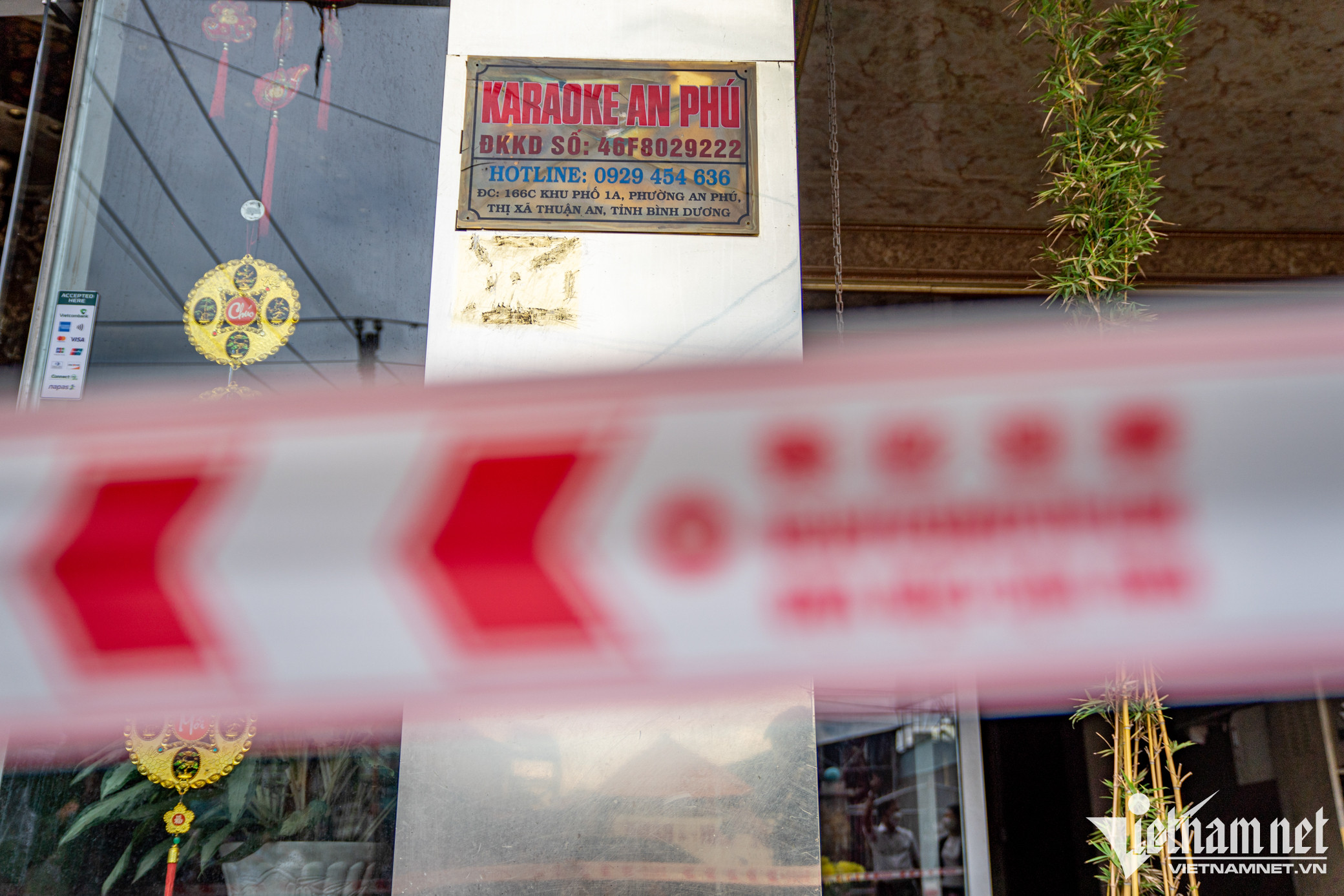 Đoạn đường phong tỏa nằm trên đường Trần Quang Diệu (TP Thuận An, Bình Dương) dài hơn 100m, phía trước quán karaoke An Phú.Theo lực lượng chức năng, việc phong tỏa diện rộng quanh khu vực quán karaoke An Phú là để giảm thiểu rủi ro phục vụ điều tra và khám nghiệm, tránh trường hợp bị nhiều người hiếu kỳ đổ đến xem.Cảnh đổ vỡ vẫn được giữ nguyên trạng, nhìn từ bên ngoài.
