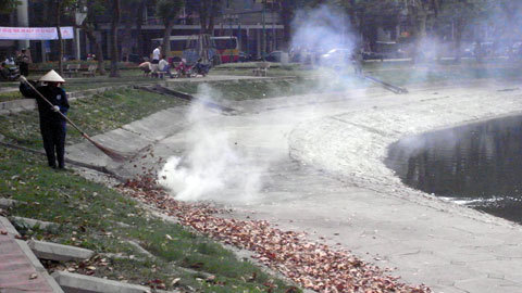 môi trường gom lại thành đống lá cây lớn rồi đốt tập trung thì hay hơn, đằng này