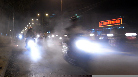 tham gia rao thông bật đèn cũng rất khó nhìn thấy đường vì khói