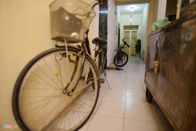 Lối đi chung trở thành nơi để xe máy của những hộ dân dưới tầng một.