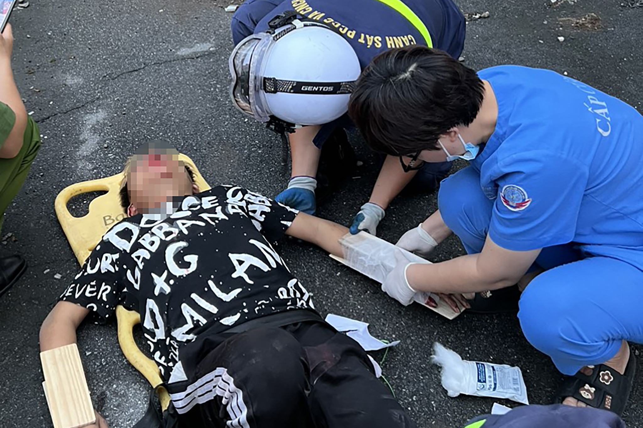 Nhận được tin báo, Công an quận đã điều động 1 xe cứu hộ cứu nạn cùng cán bộ, chiến sĩ đến hiện trường, triển khai ứng cứu nạn nhân.