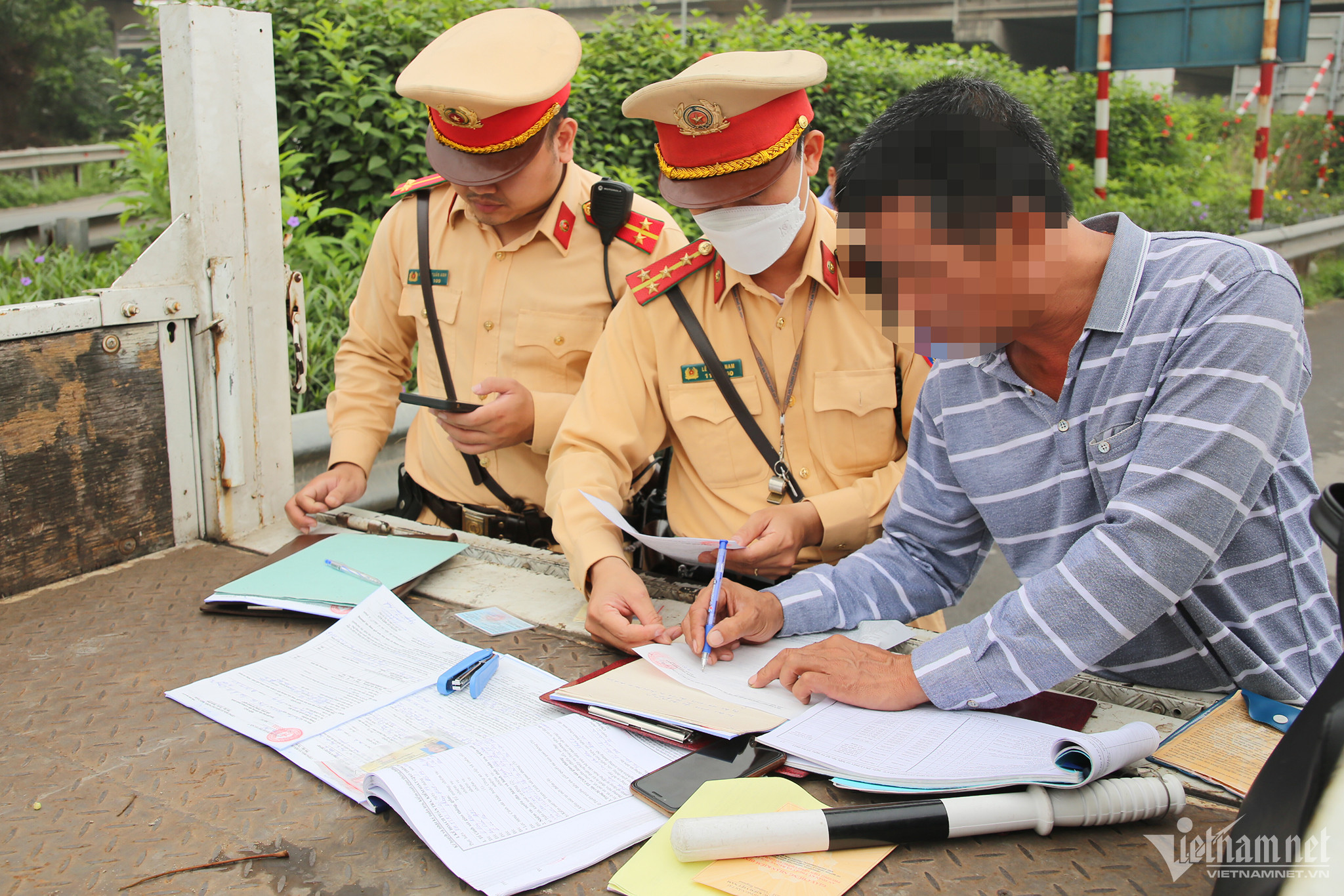 10h ngày 10/4, tổ cảnh sát hóa trang của Đội CSGT đường bộ số 14 (Phòng CSGT Công an TP Hà Nội) kết hợp với tổ xử lý vi phạm công khai thực hiện nhiệm vụ trên tuyến đường Ngọc Hồi, Quốc lộ 1A… (đoạn xung quanh Bến xe Nước Ngầm).