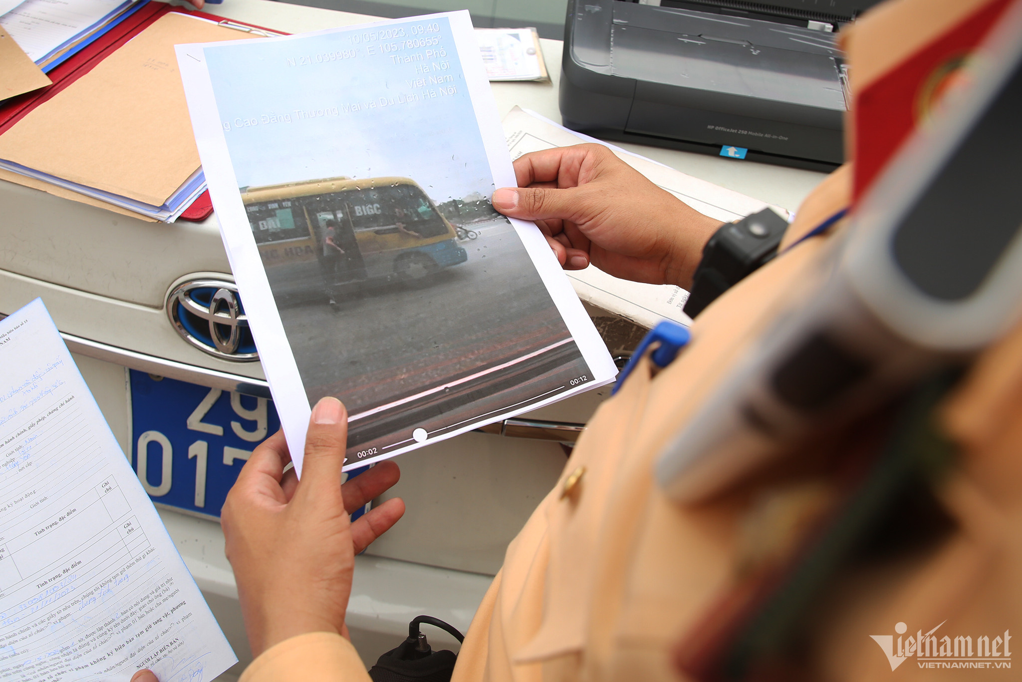 Nhận được hình ảnh từ tổ hóa trang, tổ công tác công khai dừng xe xử lý vi phạm và chuẩn bị các thiết bị nghiệp vụ, máy in màu… để in hình ảnh cho tài xế xem lại lỗi vi phạm.