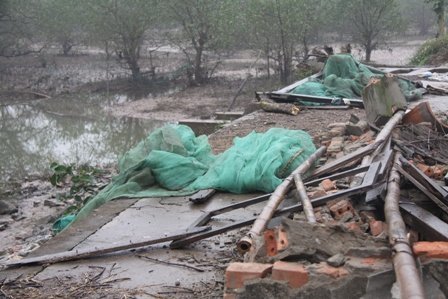 Bà Nguyễn Thị Thương (vợ Đoàn Văn Vươn) cho hay: 15h ngày 16/2, một Tổ công tác của Công an Hải Phòng đến hiện trường vụ cưỡng chế để tiến hành đo đạc và kiểm tra.