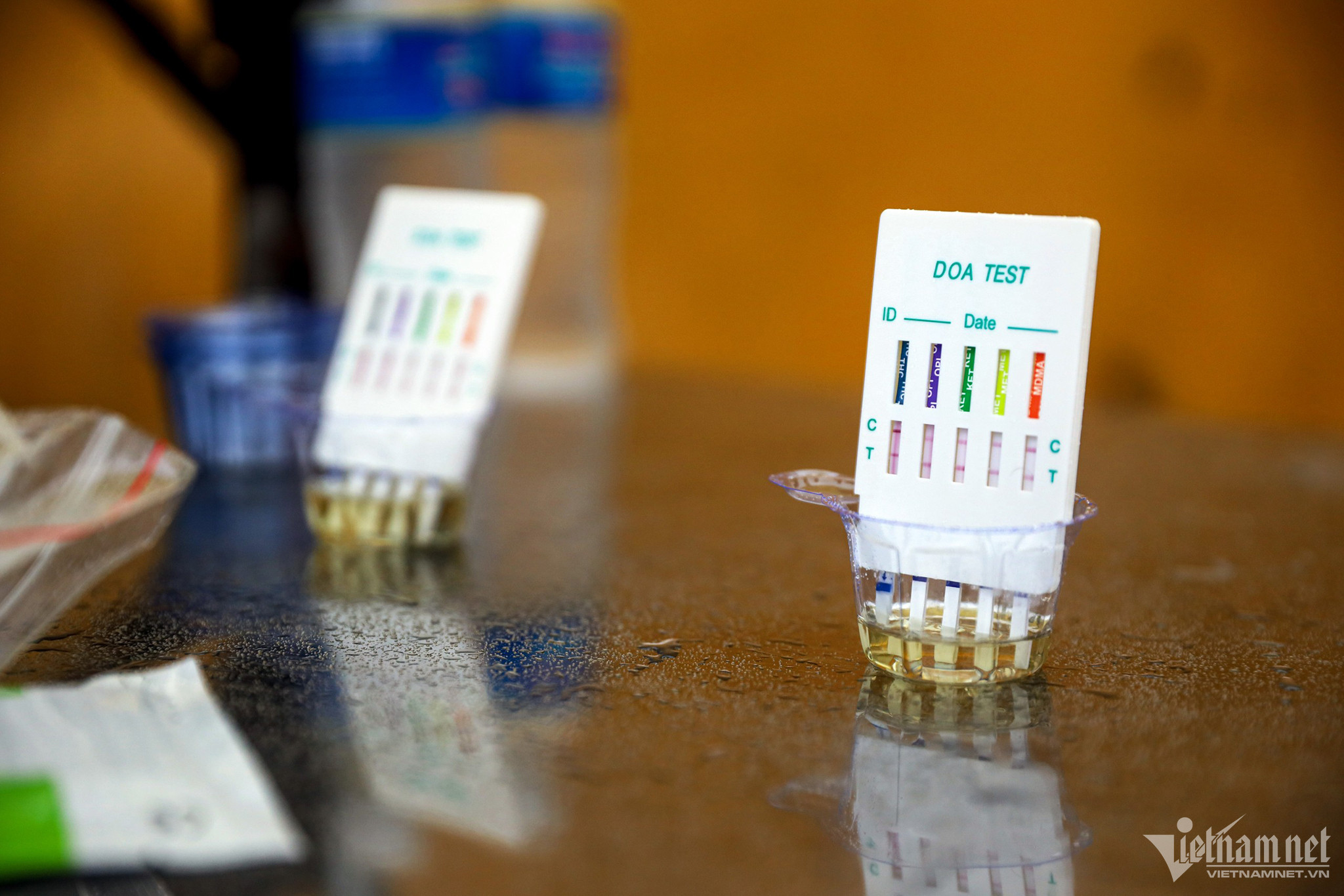 Các tài xế xếp hàng test nhanh ma túy bằng nước tiểuMất khoảng 3 phút để kit test cho ra kết quả
