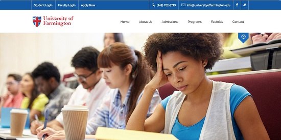 Hình ảnh trang chủ của Đại học Farmington (Nguồn: Internet) |
