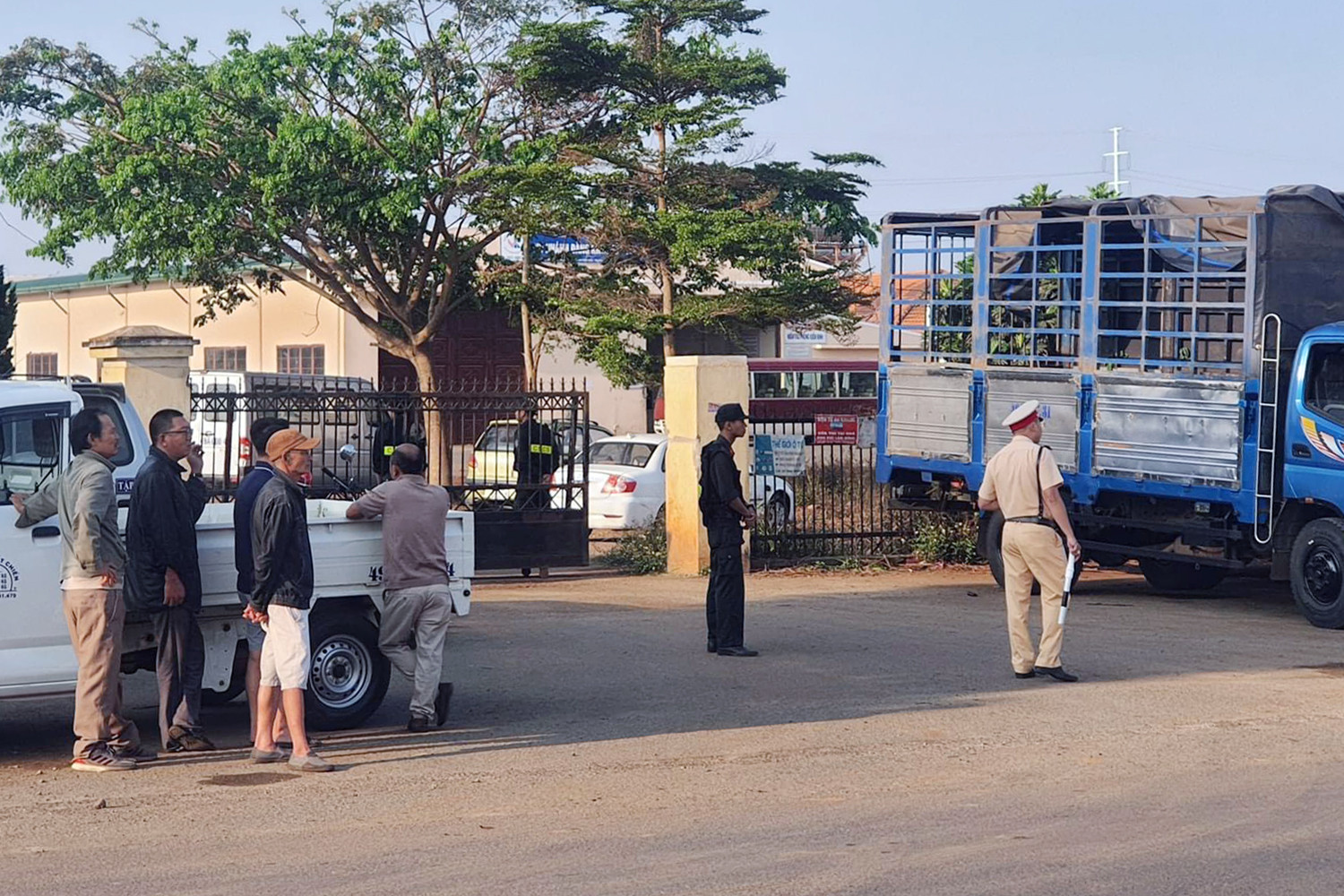Sáng 4/4, nhiều cảnh sát phong tỏa vòng ngoài Trung tâm đăng kiểm xe cơ giới Lâm Đồng trên đường Tô Hiến Thành, phường 3, TP Đà Lạt. Nhiều ô tô tới đăng kiểm được yêu cầu quay đầu ra về.