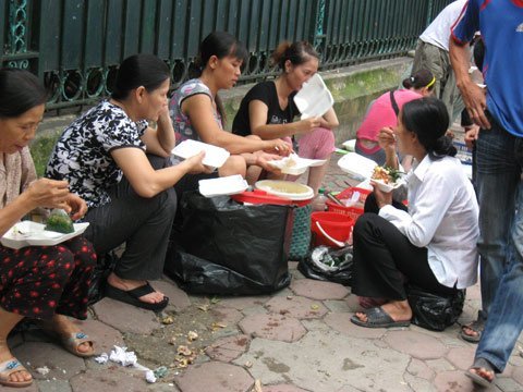 | Thực khách vẫn hồn nhiên "chén", các quán vỉa hè chỗ nào cũng đông |