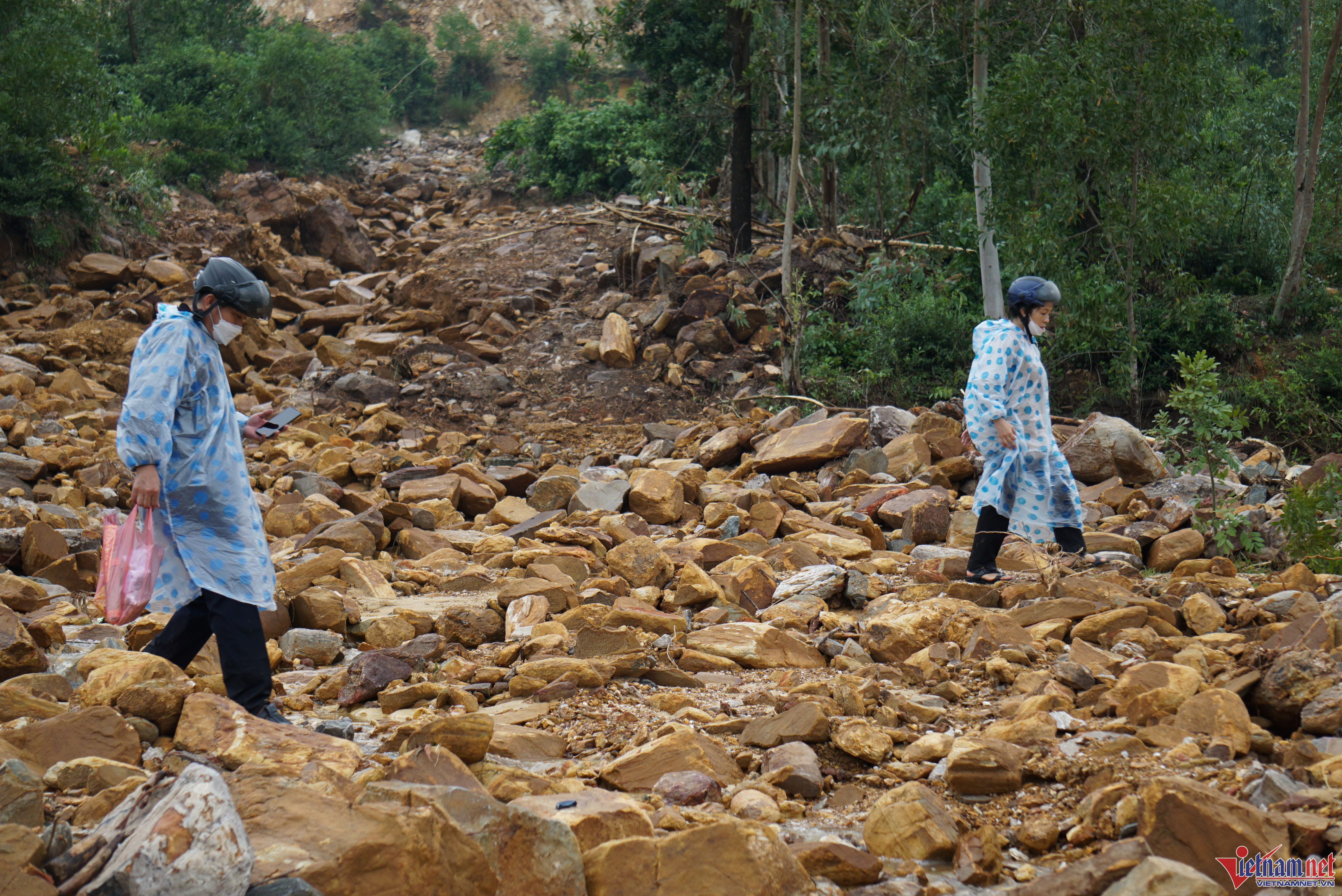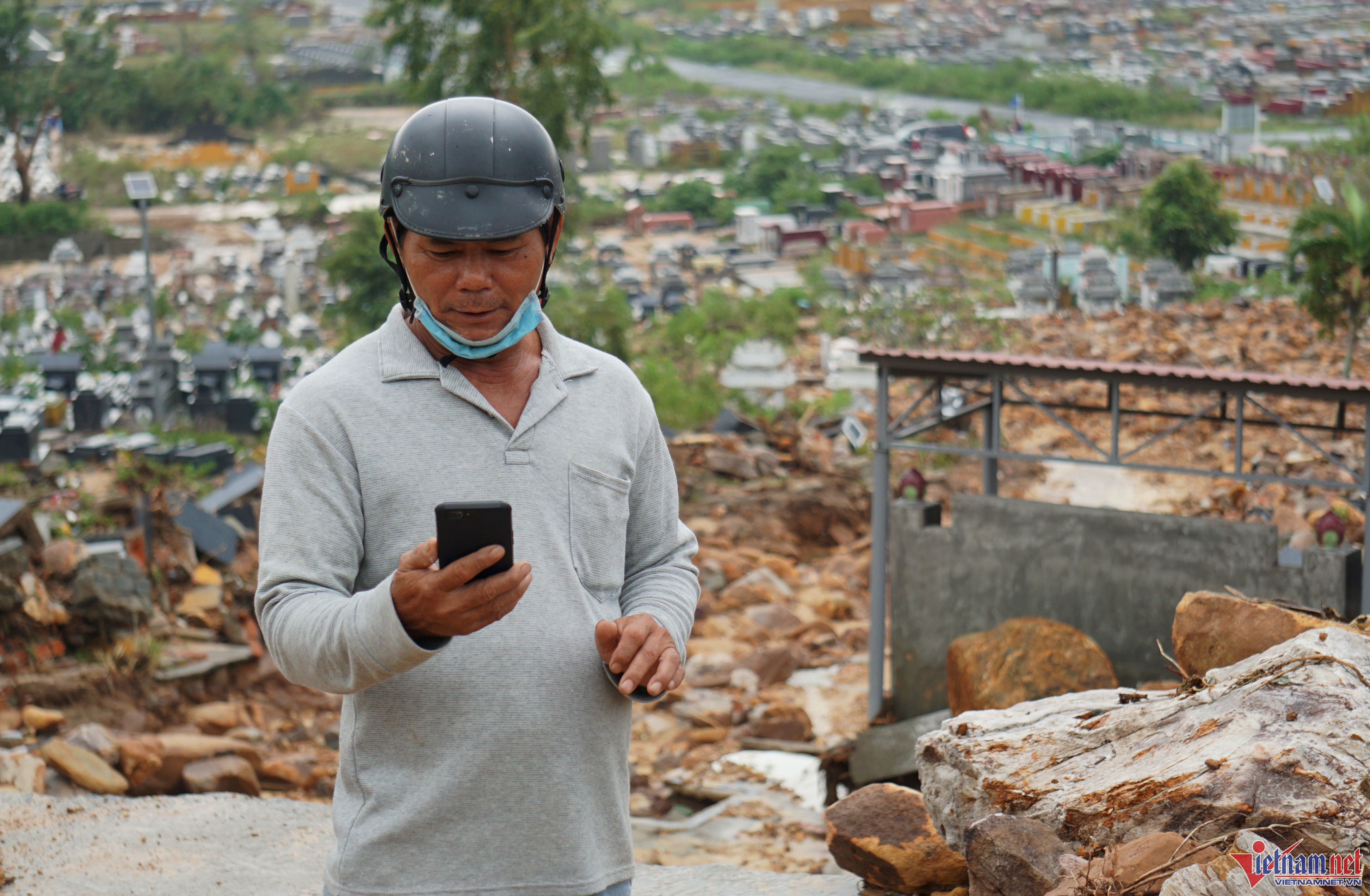 Nhiều ngôi mộ bị cuốn trôi dồn lại một gócNghe tin nghĩa trang sạt lở, vùi lấp mộ sáng nay nhiều người dân tìm đến nghĩa trang để kiểm traBưng đất đá đổ lấp mộ cháu gái, ông Lê Văn Bình (60 tuổi, ngụ phường Hòa Cường Nam, quận Hải Châu) cho biết: "Hầu như các phần mộ tại đây bị đất đá và nước cuốn trôi hết giờ rất khó để tìm lại tro cốt. Phần mộ cháu gái tôi may mắn có trồng cây hoa sứ nên cản được đất đá nếu không cũng bị vùi lấp rồi".Ông Mỹ (thợ xây dựng) gọi điện thông báo cho một gia đình biết phần mộ của gia đình họ bị cuốn trôi không tìm thấy. "Sáng nay tôi được một gia đình nhờ lên xem tìm hình để khắc phục phần mộ bị vùi lấp, nhưng khi lên đây thì tìm không có nên báo cho họ biết", ồn Mỹ nói.Bà Trần Thị Bốn (70 tuổi, ngụ quận Sơn Trà) cùng em trai đến nghĩa trang để kiểm tra. Bà Bốn cho biết, một số phần mộ của gia đình đã bị vùi lấpLượng lớn đất đá đổ xuống khu vực nghĩa trang TP Đà Nẵng