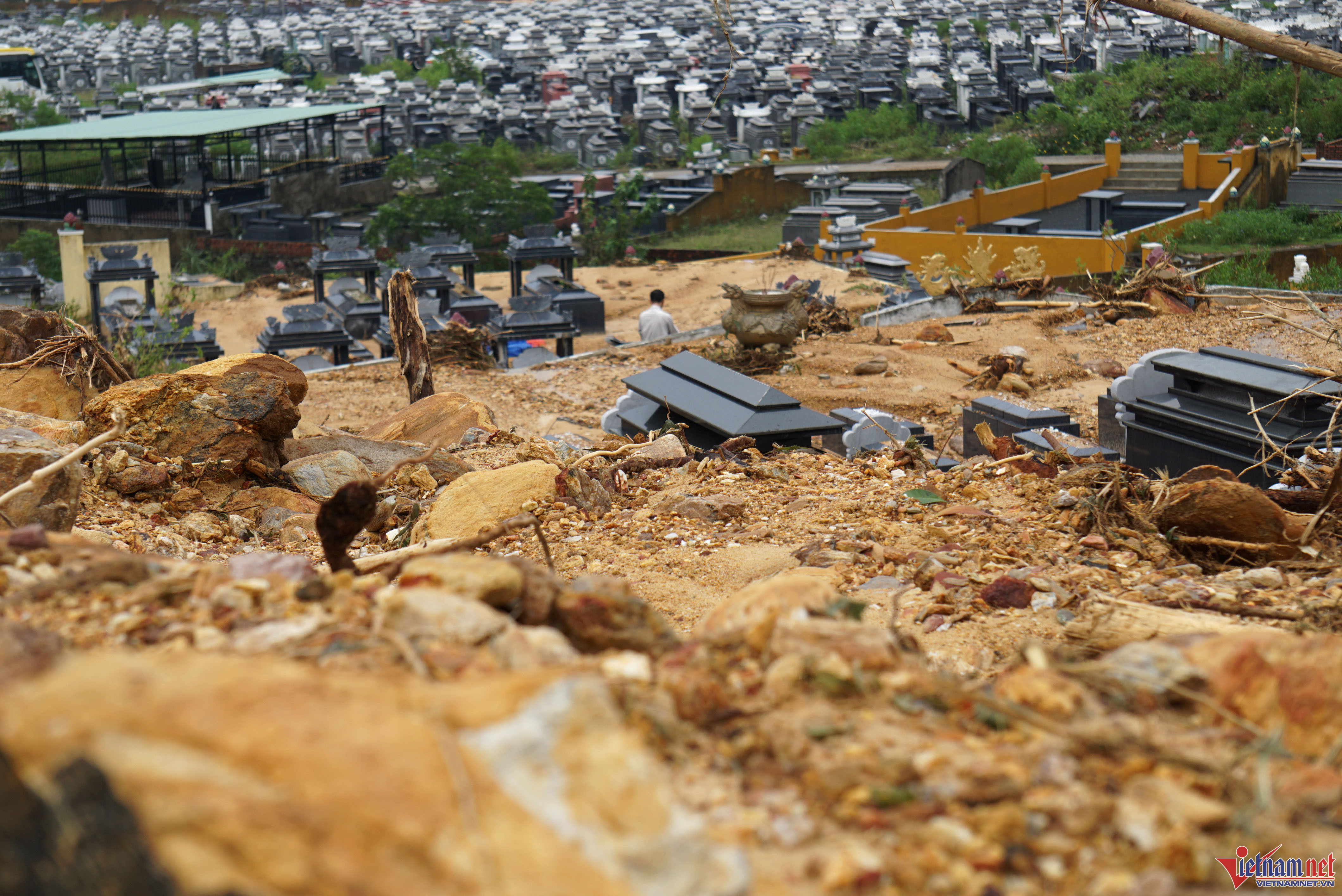 Mưa lớn vừa qua khiến hàng tấn đất, đá đổ xuống nhiều vị trí ở nghĩa trang TP Đà Nẵng đã làm vùi lấp, cuốn trôi hàng nghìn ngôi mộ.