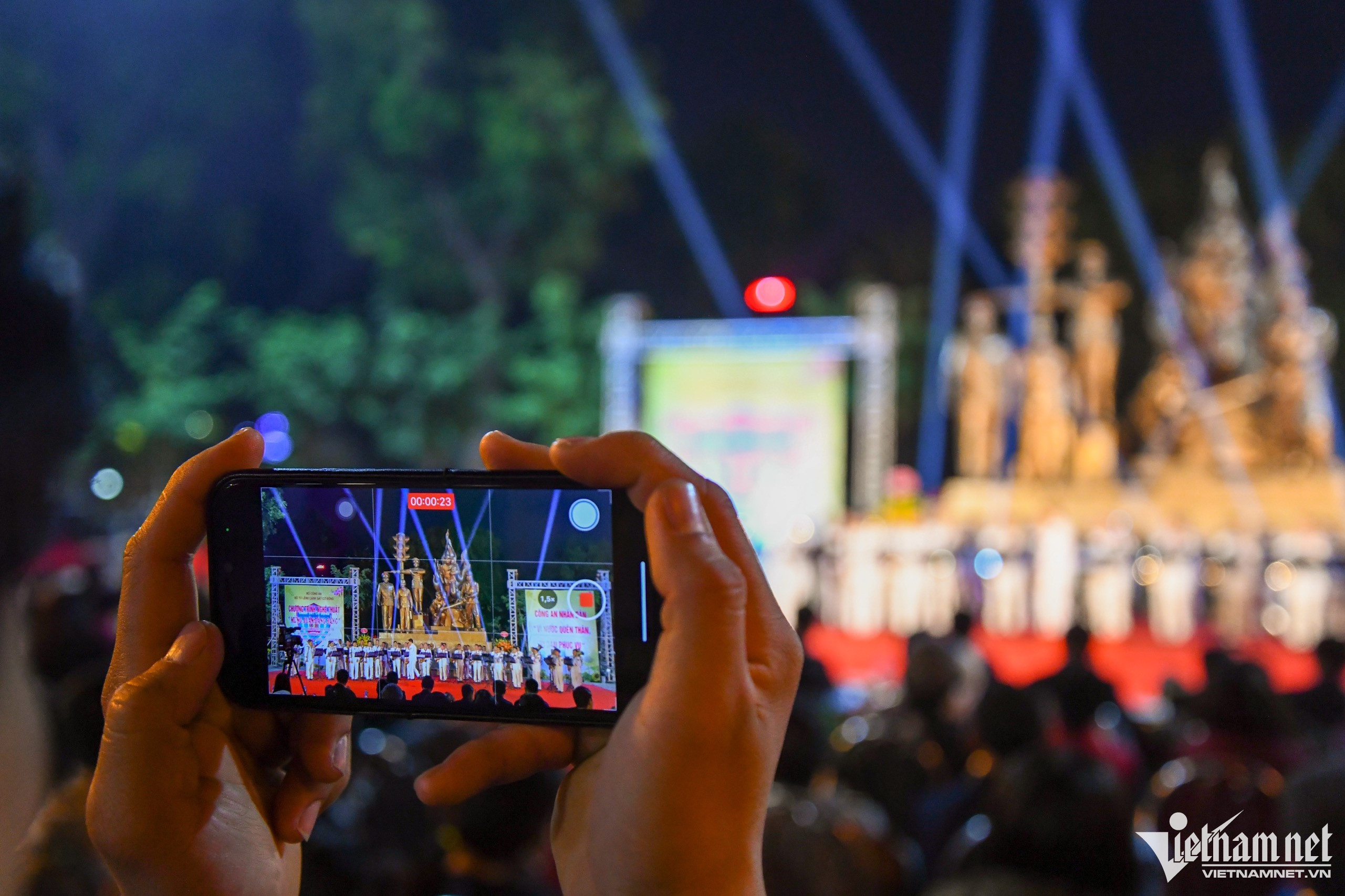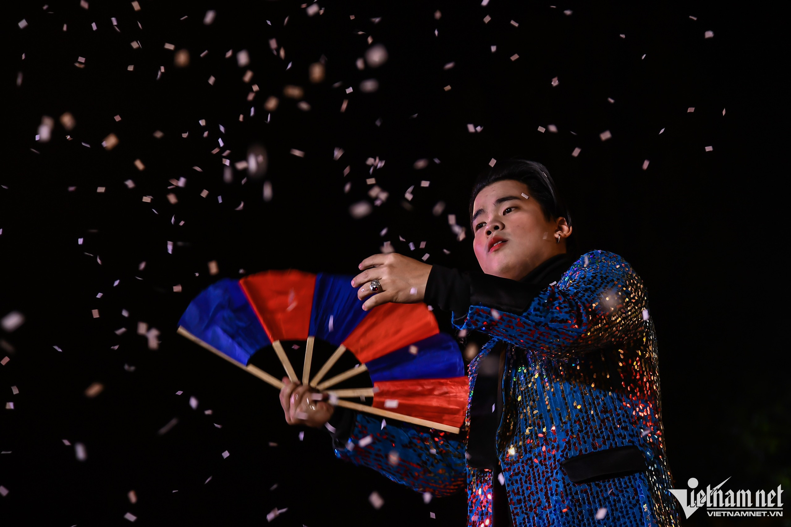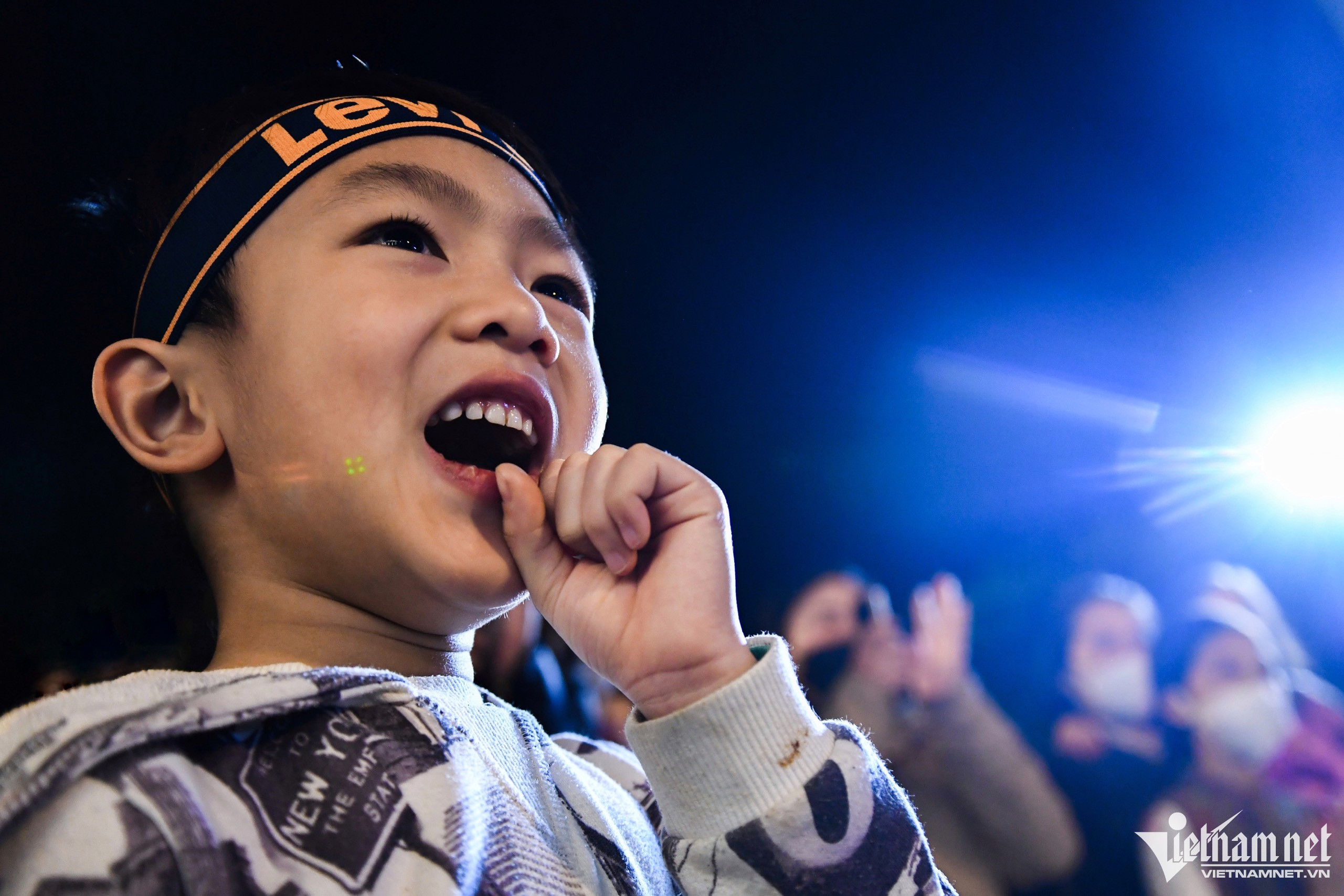 Ngoài biểu diễn văn nghệ, đàn hát, ở phố đi bộ Trần Nhân Tông còn có biểu diễn xiếc miễn phí, thu hút hàng trăm bạn nhỏ và người lớn tới xem.