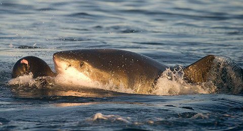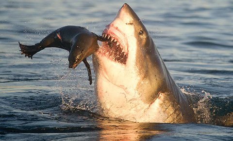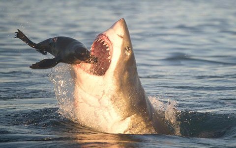 David Yarrow, nhiếp ảnh gia về thế giới tự nhiên người Scotland trong một chuyến du lịch tới Nam Phi đã may mắn chộp được cảnh tượng kỳ thú. Một con cá mập trắng đuổi theo một con hải cẩu, dùng sức hất tung con hải cẩu lên khỏi mặt nước rồi nuốt trọn con mồi với hàm răng sắc nhọn của mình.
