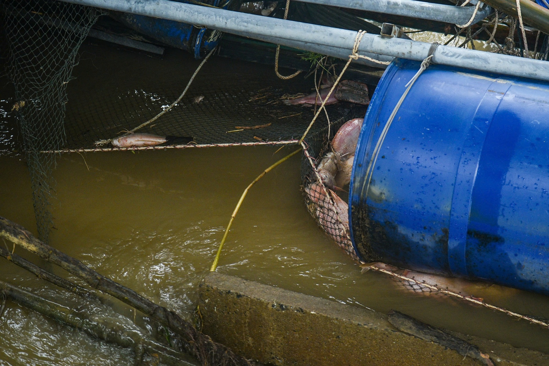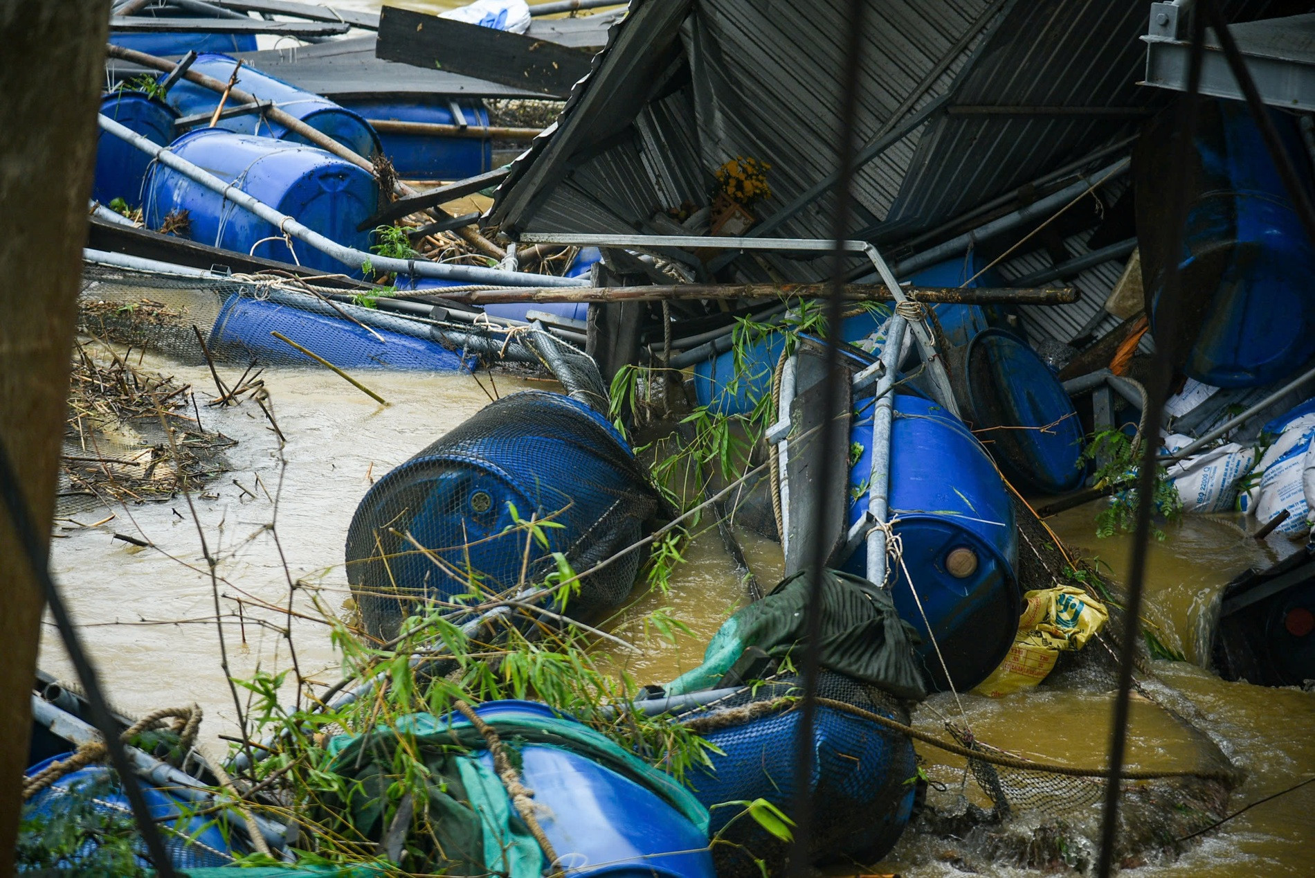 “Chiều qua trời mưa lớn, khi tôi đang ở trên bè thì thấy nước sông dâng nhanh, chảy xiết. Tôi chỉ kịp nhảy lên thuyền thoát thân, hoàn toàn bất lực nhìn lồng bè bị đứt dây neo và trôi đi. Năm nay tôi đầu tư nuôi cá diêu hồng, không ngờ mưa lũ đến sớm khiến mất trắng hơn 4 tỷ đồng”, anh Long xót xa nói.