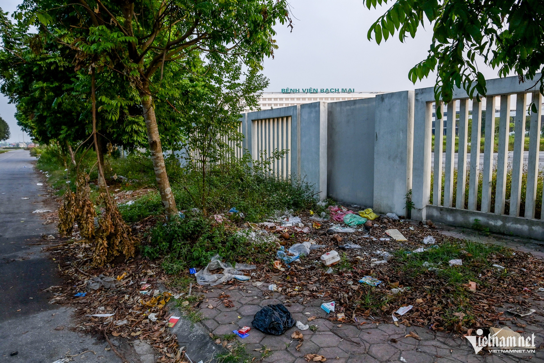 Rác thải bủa vây xung quanh phía ngoài bệnh viện khiến khung cảnh nơi đây rất nhếch nhác.