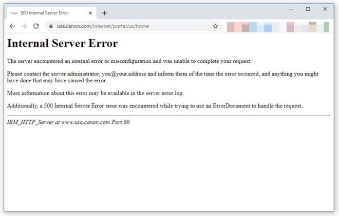 Trong thời điểm viết bài, những trang web của Canon bao gồm canonusa.com, usa.canon.com, canonhelp.com, imageland.net, consumer.usa.canon.com, cusa.canon.com, đều không thể truy cập được, một số trang hiện thông báo đang sửa chữa, một số thì hiện bảng thông báo lỗi.