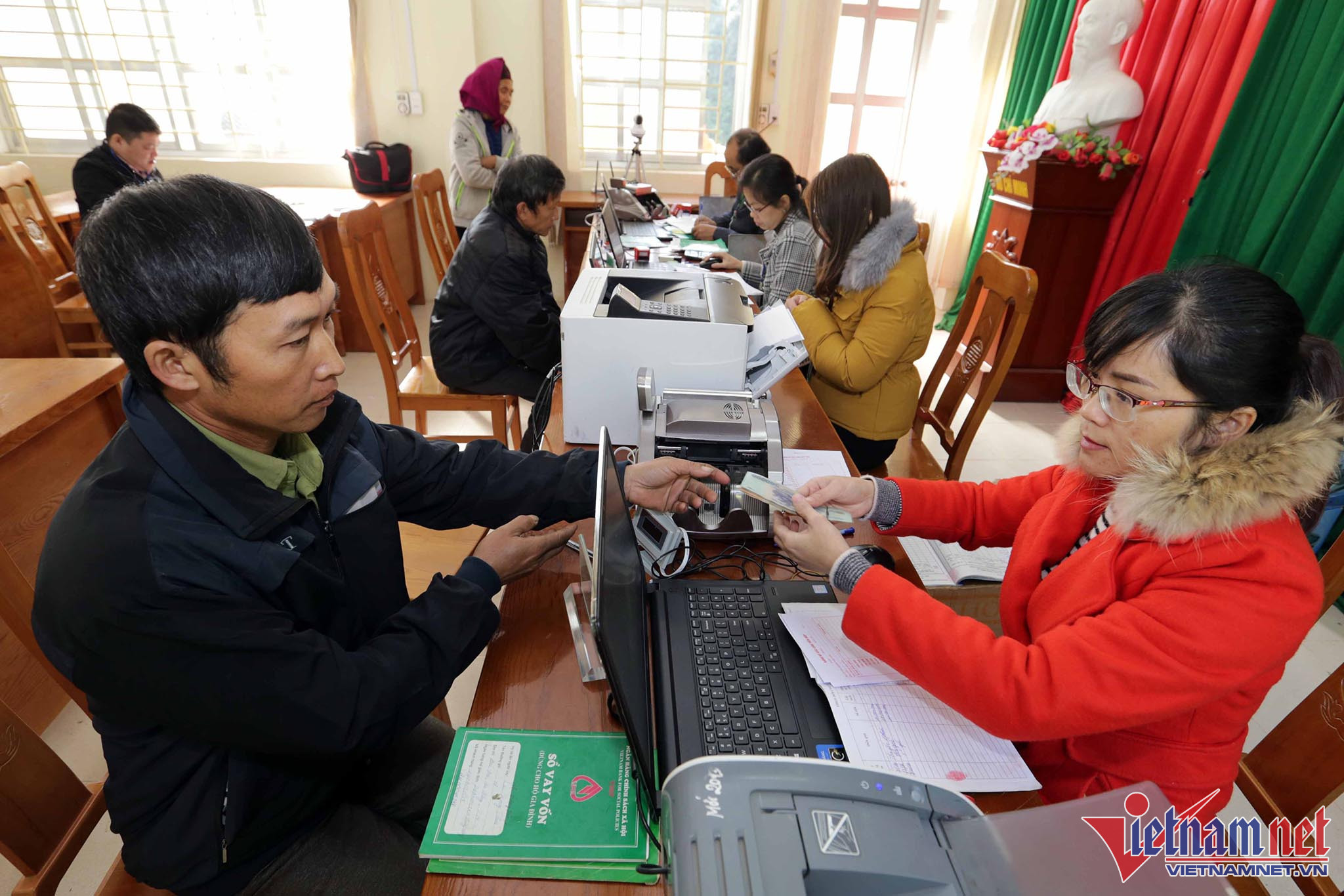 Những ngày cuối năm, cán bộ NHCSXH huyện Hòa An vẫn miệt mài công việc để bà con xã Quang Trung đến giao dịch, góp phần hoàn thành 100% công việc của chi nhánh.Những ngày cuối năm, cán bộ NHCSXH huyện Hòa An vẫn miệt mài công việc để bà con xã Quang Trung đến giao dịch, góp phần hoàn thành 100% công việc của chi nhánh.Nhờ vốn vay 50 triệuđồng chương trình cho vay hộ sản xuất kinh doanh vùng khó khăn, gia đình bà Trương Thị Hồ, dân tộc Tày ở xã Quang Trung, huyện Hòa An cóđiều kiện cải tạo hơn 1ha vườnđồi trồng cam, mận và nhiều loại cây ăn quả khác cho hiệu quả kinh tế cao. Nhờ vốn vay 50 triệuđồng chương trình cho vay hộ sản xuất kinh doanh vùng khó khăn, gia đình bà Trương Thị Hồ, dân tộc Tày ở xã Quang Trung, huyện Hòa An cóđiều kiện cải tạo hơn 1ha vườnđồi trồng cam, mận và nhiều loại cây ăn quả khác cho hiệu quả kinh tế cao. Gia đìnhông Lương Văn Giáo, dân tôc Tàyở thôn Khau Súng Khuổi Bắc, xã Quang Trung, huyện Hòa An vay vốn chương trình cho vay hộ nghèođầu tư nuôi trâu, sau 3 năm đã cóđàn trâu 4 con, gia đình có cơ hội thoát nghèo. : Gia đình chị Hoàng Thị Lìm, dân tộc Tàyở xãĐoài Côn, huyện Trùng Khánh vay vốn chương trình cho vay hộ nghèo về nhàở cải tạo nhà đảm bảo tiêu chí đề ra.Từ nguồn vốn vay ưu đãi gia đình anh Hoàng Văn Nhất, dân tộc Nùngở thôn Bản Niếng, xã Quang Hán, huyện Trà Lĩnh cóđiều kiệncải tạo 6000 m2 vườn đồi trồng quýt cho hiệu quả cao, dự kiến năm 2018 thu khoảng 20 tấn quả. Từ nguồn vốn vay ưu đãi gia đình anh Hoàng Văn Nhất, dân tộc Nùngở thôn Bản Niếng, xã Quang Hán, huyện Trà Lĩnh cóđiều kiệncải tạo 6000 m2 vườn đồi trồng quýt cho hiệu quả cao, dự kiến năm 2018 thu khoảng 20 tấn quả. Gia đình chị Long Thị Thắm, dân tộc Tàyở xã Đa Thông vay vốn chương trình cho vay hộ nghèo đầu tư nuôi trâu, trồng rừng, gia đình có cơ hội thoát nghèo.Gia đình chị Long Thị Thắm, dân tộc Tàyở xã Đa Thông vay vốn chương trình cho vay hộ nghèo đầu tư nuôi trâu, trồng rừng, gia đình có cơ hội thoát nghèo.Nhờ vốn vay 50 triệu chương trình cho vay hộ sản xuất kinh doanh vùng khó khăn, gia đình chị Nông Thị Hồng (trái), dân tộc Tàyở xóm Bản Giàng, xã Đa Thông cóđiều kiện chăn nuôi trâu, ong mật, gia đình chị đượcđánh giá làđiển hình phát triển kinh tế. Hộ nghèo, gia đình chính sách làm thủ tục vay vốn tạiđiểm giao dịch xã Đa Thông, huyện Thông Nông. Nhiều hộ ở huyện Trùng Khánh vay vốn ưu đãi đầu tư máy móc phục vụ sản xuất cho hiệu quả kinh tế tốt.Vốn vay ưu đãiđã giúp người dân ở xã Quang Trung, huyện Hòa An; xã Quang Hán, huyện Trà Lĩnh cải tạo đất đồi, chuyển đổi cơ cấu cây trồng tạo thành vùng chuyên canh cây ăn quả cho giá trị kinh tế cao.Với đồng bào vùng cao biên giới, nguồn vốn vay ưu đãiđã giúp hàng ngàn hộ đầu tư nuôi trâu và nó thực sự là “đầu cơ nghiệp” cho nhiều gia đình nơi đây.