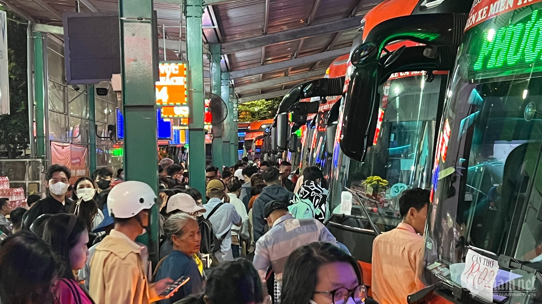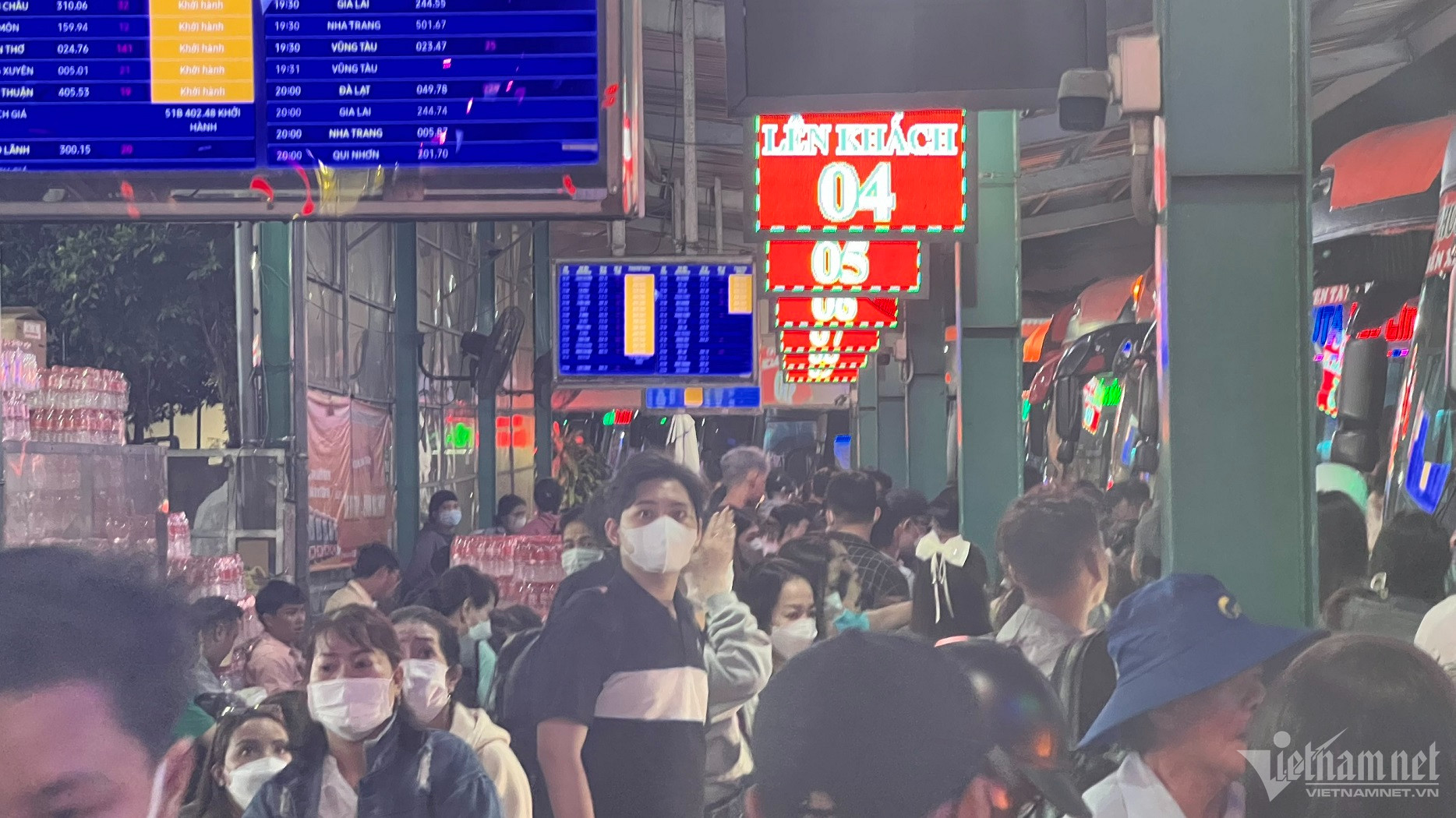 Thời điểm 22h đêm nhưng bên trong bến xe chật cứng hành khách đứng chờ lên xe để về quê.