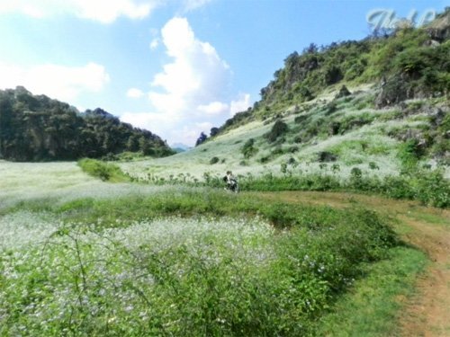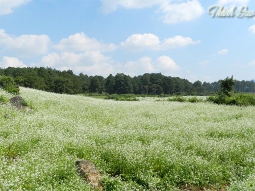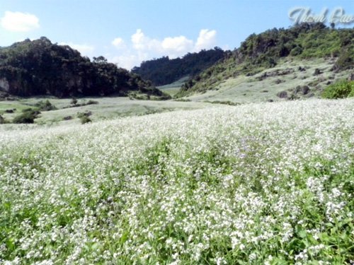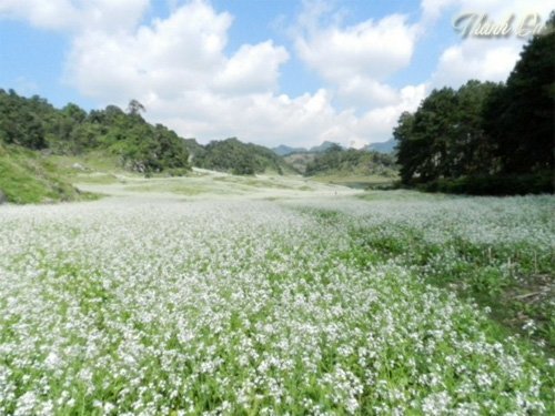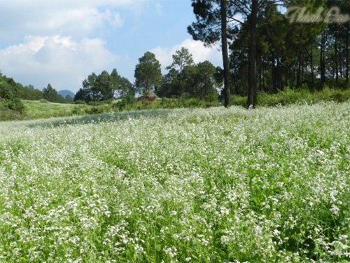 | Cải trải dài hàng chục ha khắp các cánh đồng, quả đồi, phủ lên một màu trắng muốt. |