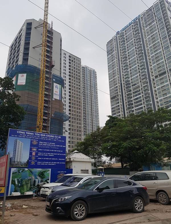 Nhiều dự án chung cư chọc trời cũng đang tiếp tục được xây dựng dọc hai bên đường Nguyễn Xiển.