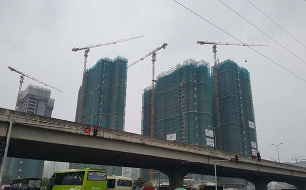 Thực tế các toà cao ốc đang được xây dựng ở ngã tư đường nút Khuất Duy Tiến- Trần Duy Hưng.