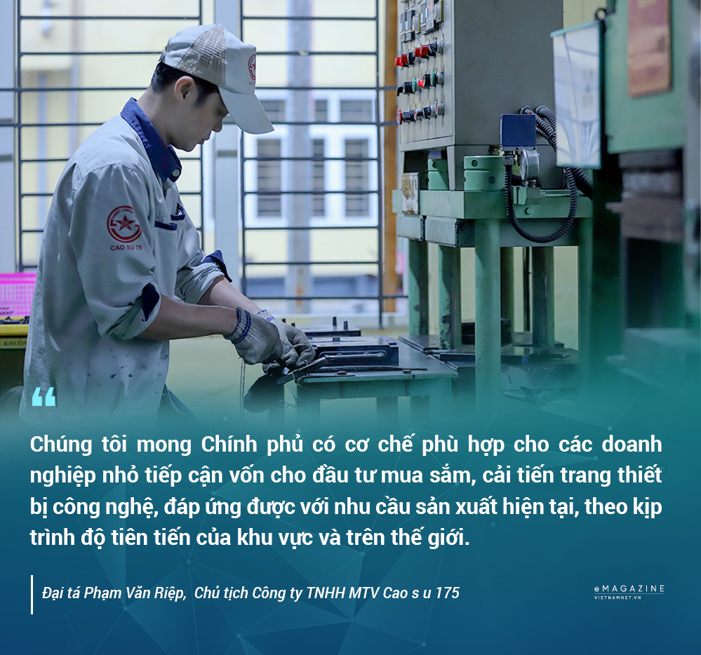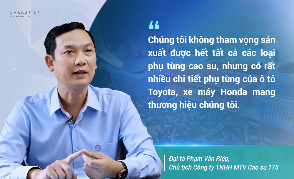 Đại tá Phạm Văn Riệp: Về câu chuyện sản xuất của công ty, đặc biệt là phụ tùng cao su kỹ thuật cao phải tách ra làm hai phần. Thứ nhất, chúng tôi cũng là một doanh nghiệp, vì vậy cũng phải tuân thủ chặt chẽ theo luật doanh nghiệp. Thứ hai, doanh nghiệp của chúng tôi đặc thù sản xuất cao su, mà cao su cũng là một ngành nghề hẹp chứ không phải rộng. Vì vậy, cũng có thuận lợi và khó khăn.