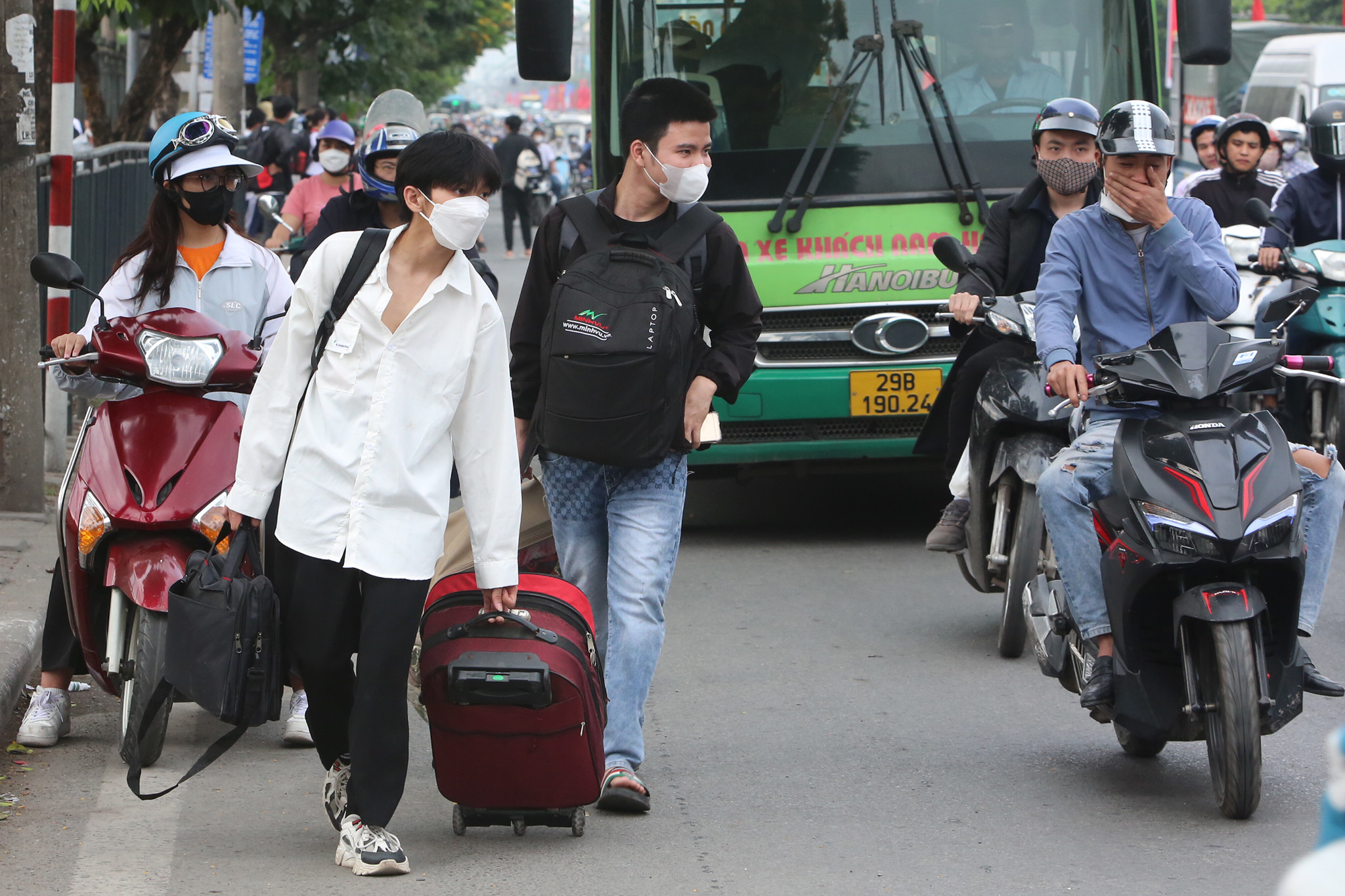 Tại khu vực trước cửa bến xe Giáp Bát, lực lượng chức năng đã tổ chức phân luồng để hạn chế phương tiện quay đầu trước cửa bến, giảm ùn tắc. Lượng người đến bến xe để về quê cũng tăng so với thường lệ.