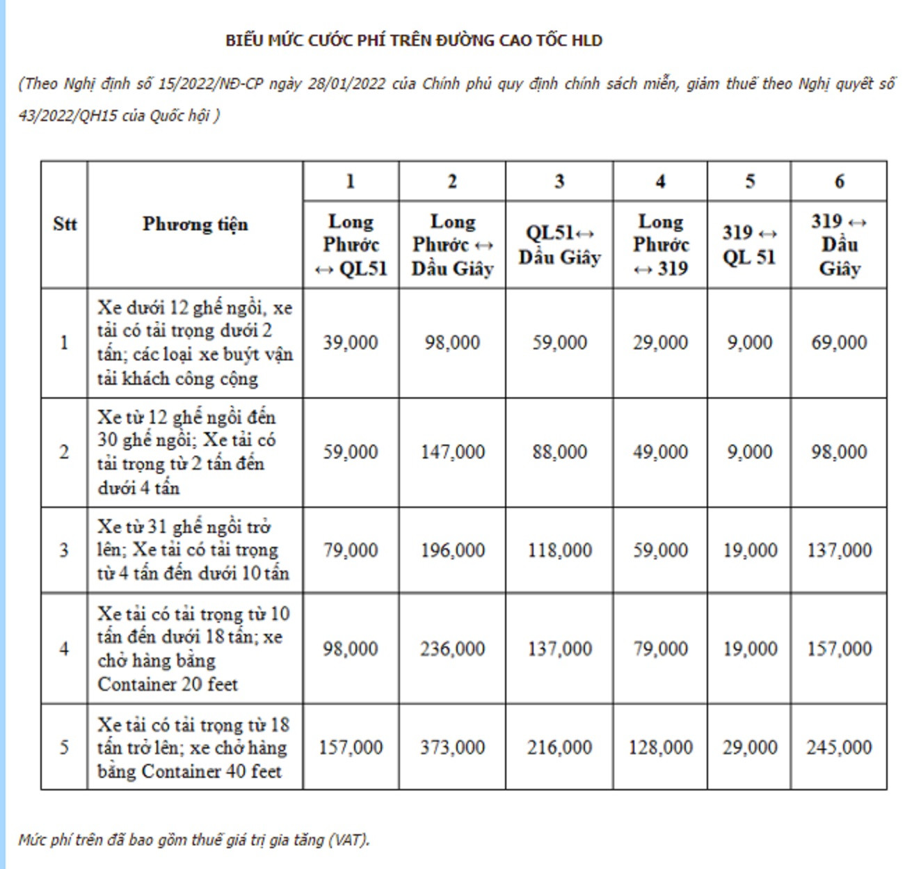 Ví dụ: Nếu đi từ Long Phước (TP Thủ Đức) đến hết cao tốc HLD là điểm giao quốc lộ 1A (huyện Thống Nhất, Đồng Nai) thì thu phí 98.000 đồng (chưa tính VAT). Tuy nhiên, nếu phương tiện đi từ Long Phước đến nút giao thành phần đầu tư xây dựng đoạn Phan Thiết - Dầu Giây, muốn thoát cao tốc HLD vào tuyến cao tốc Phan Thiết- Dầu Giây thì chi phí sẽ giảm xuống còn 78.000 đồng (chưa tính VAT).