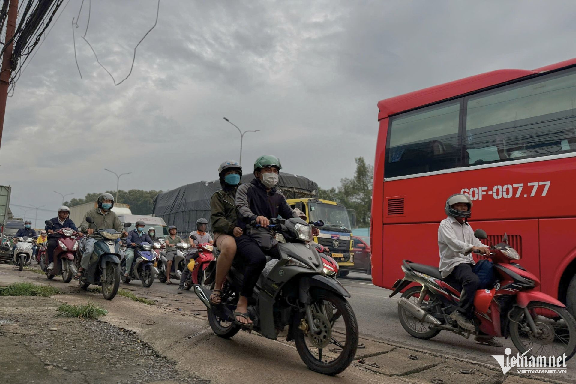 Tình hình càng trở nên phức tạp khi nhiều xe tải, xe khách lấn vào làn xe máy, gây khó khăn cho việc di chuyển. Thậm chí, nhiều người điều khiển xe máy bất chấp nguy hiểm, leo lên lề đường để tìm lối thoát.