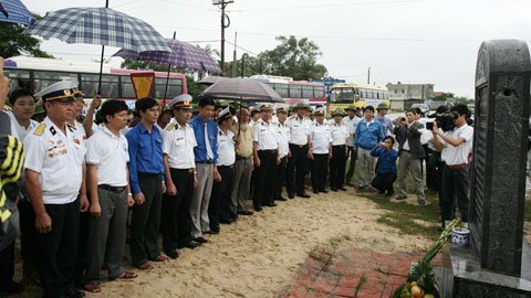 Đoàn hành trình làm lễ dâng hương tại điểm di tích đường Hồ Chí Minh đông Trường Sơn tại ngã ba Quốc lộ 1 rẽ vào Cảnh Gianh