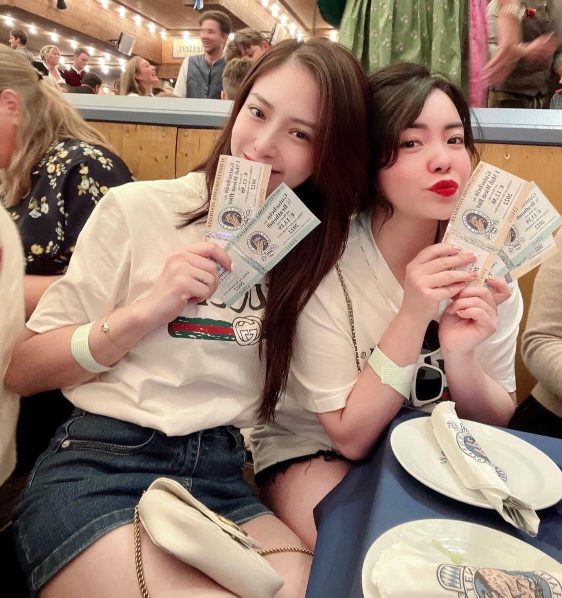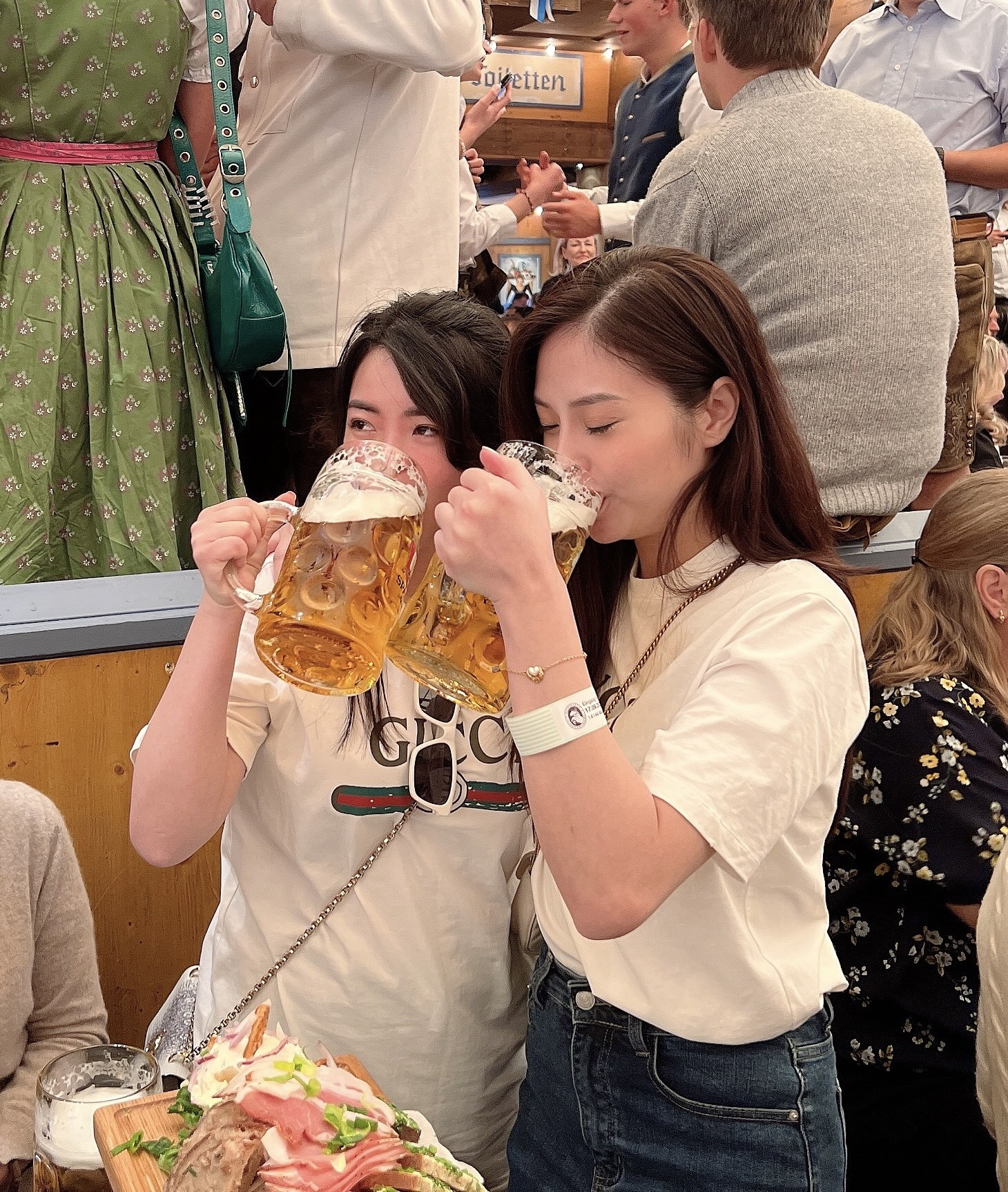 Hai chị em thích thú tham gia lễ hội bia nổi tiếng ở Đức.