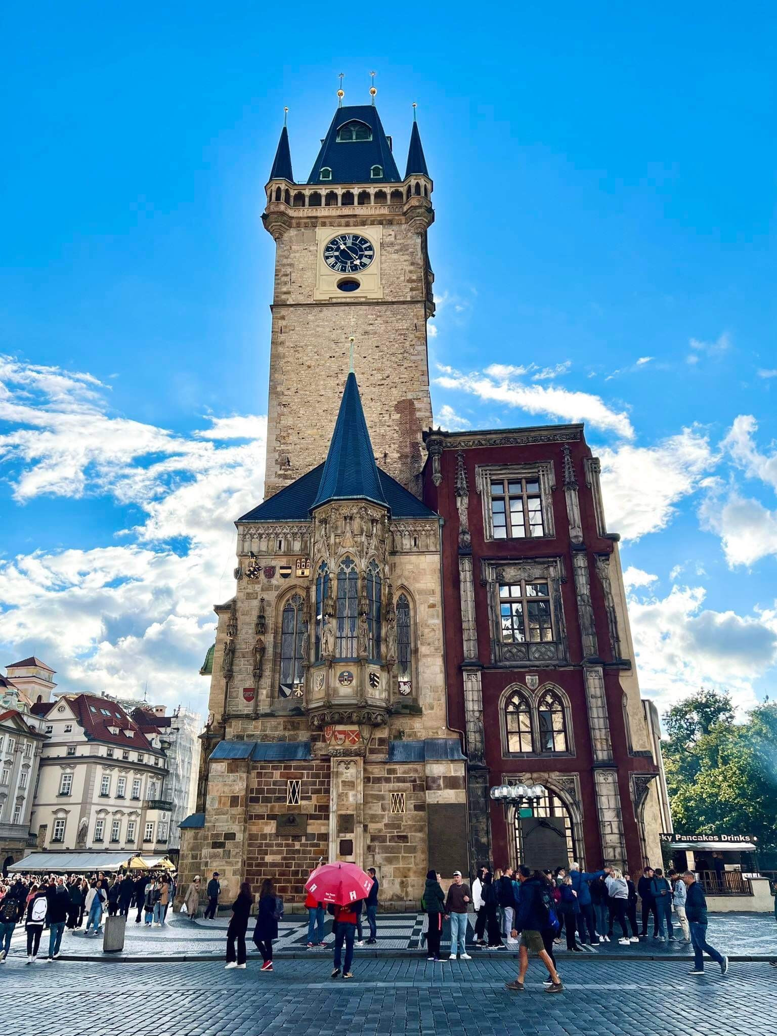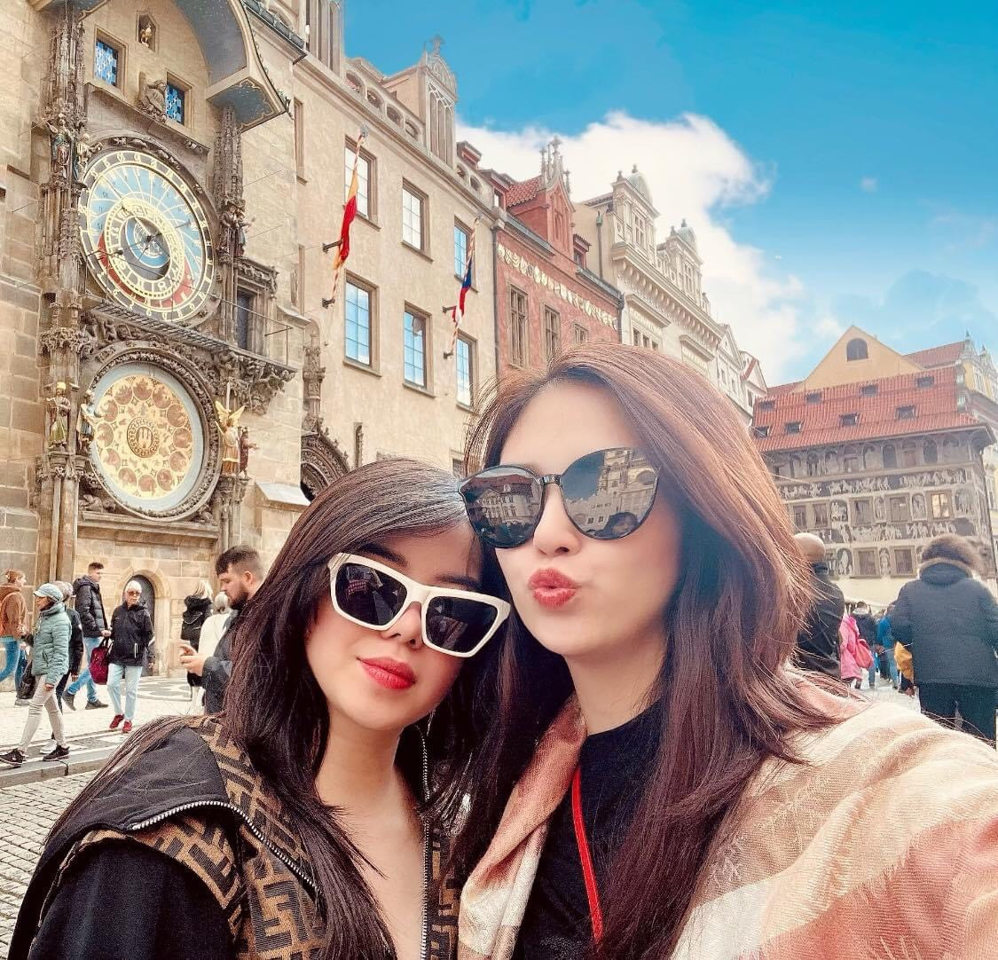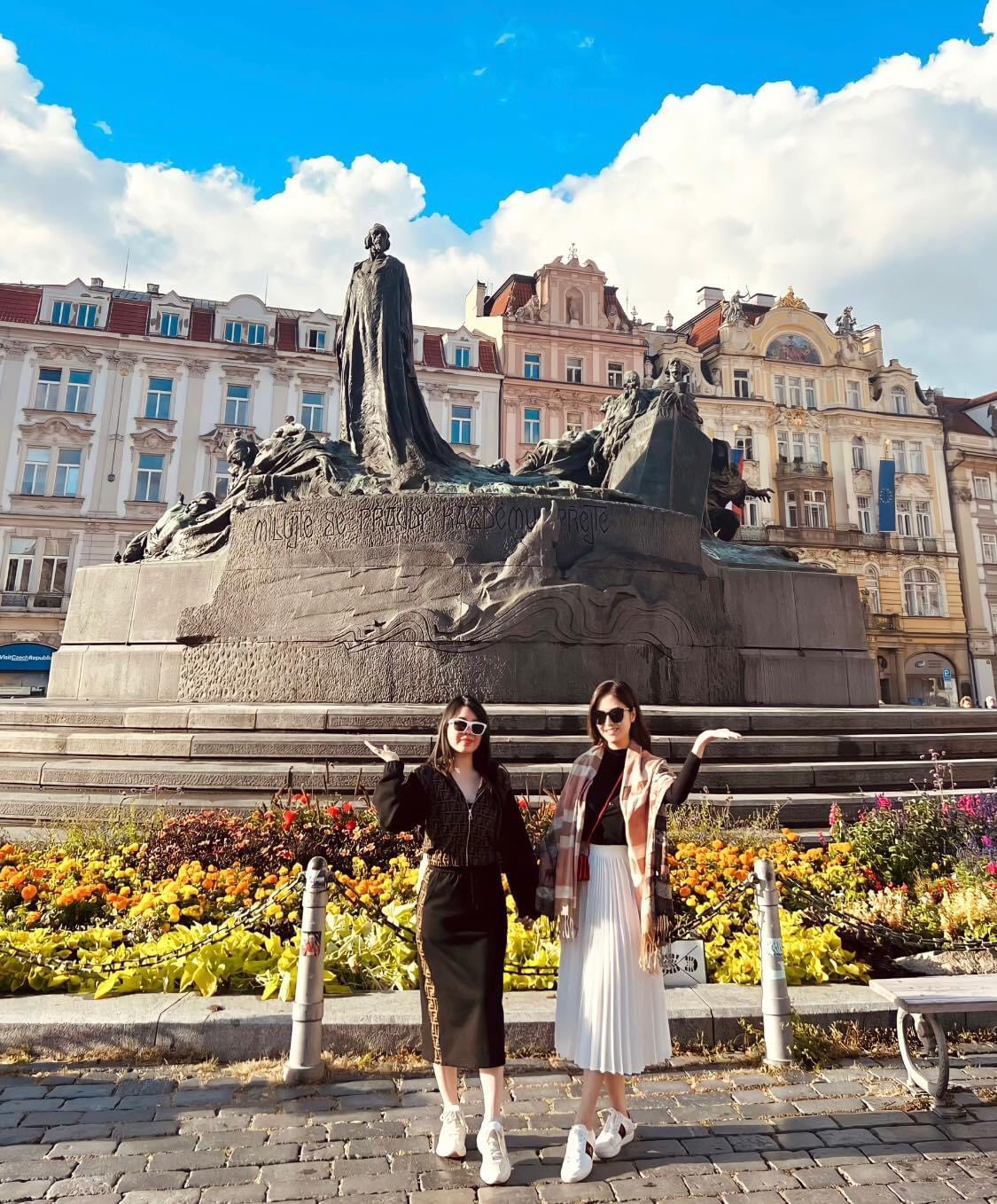 Hai chị em check-in tại Quảng trường Old Town (ảnh giữa) và Đồng hồ thiên văn ở Praha, CH Séc.