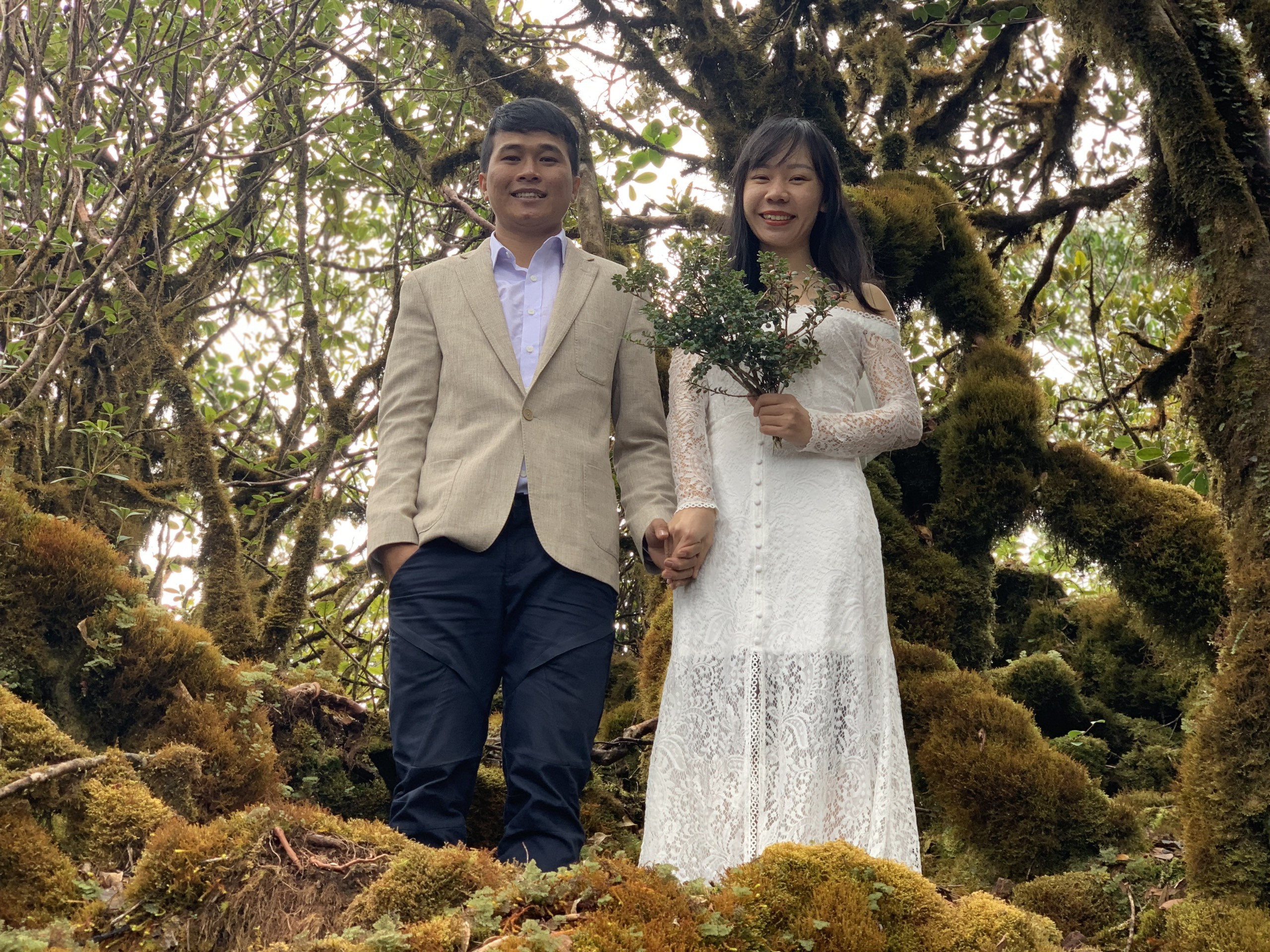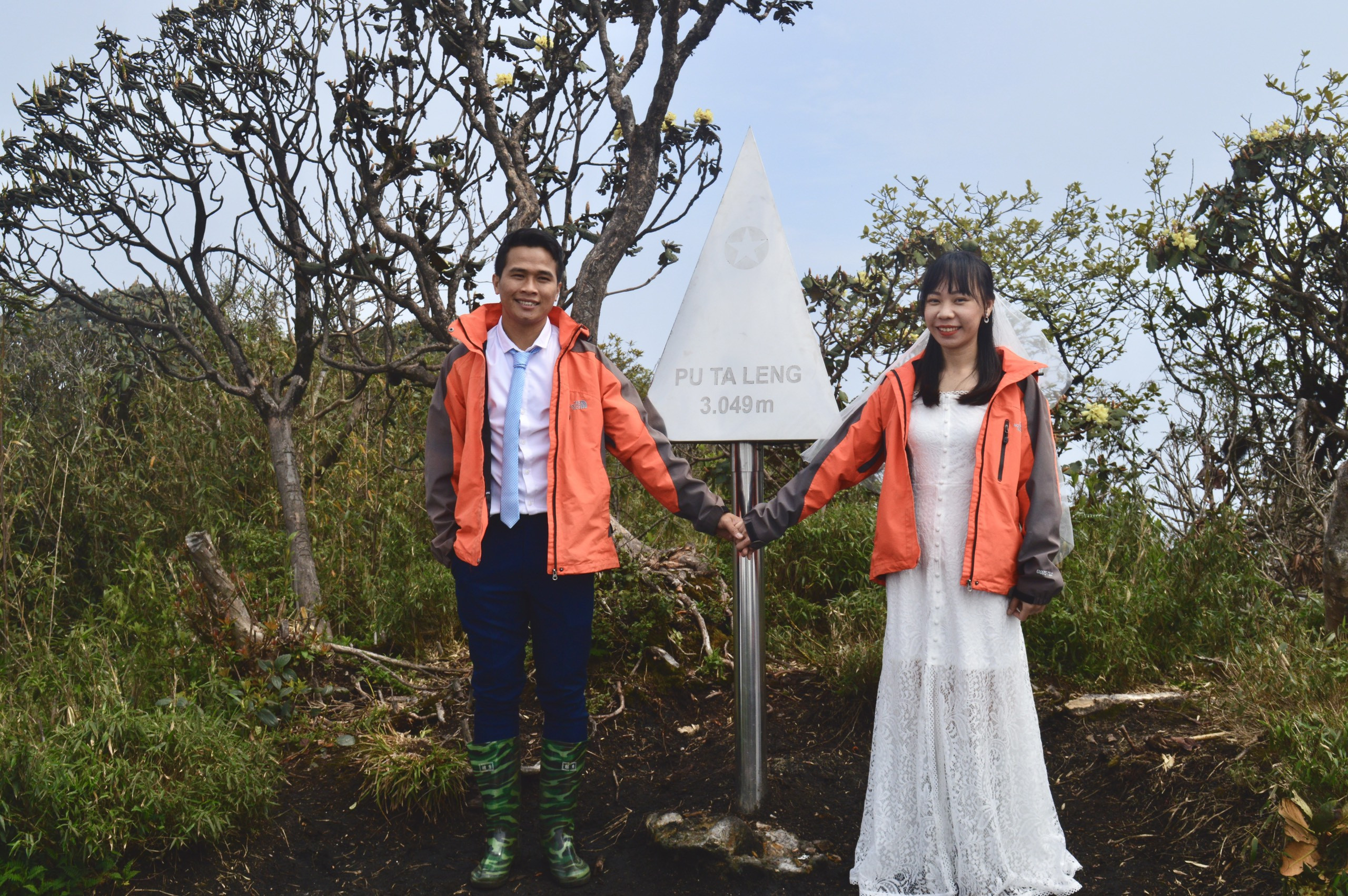 Putaleng cũng là nơi cặp đôi thực hiện những bức hình cưới đầu tiên, chuẩn bị cho ngày trọng đại. Anh Lập cho biết, trong vài phút bất chợt, họ nảy ra ý tưởng mang váy cưới và vest check-in trên các đỉnh núi cao nhất Việt Nam để làm tư liệu độc lạ cho bộ ảnh vu quy sau này.