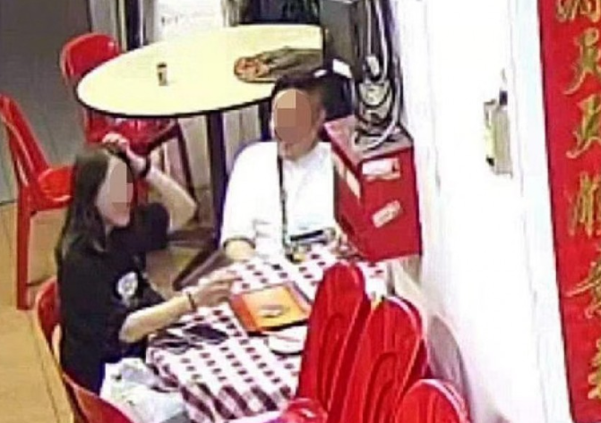 Camera nhà hàng ghi lại cho thấy người đàn ông mặc áo sơ mi trắng trong khi người phụ nữ mặc áo phông đen. Họ ở độ tuổi 40, trông khá bình tĩnh và trò chuyện vui vẻ. Vì khách không thanh toán hoá đơn nên cô Chen phải tự chịu số tiền đó.