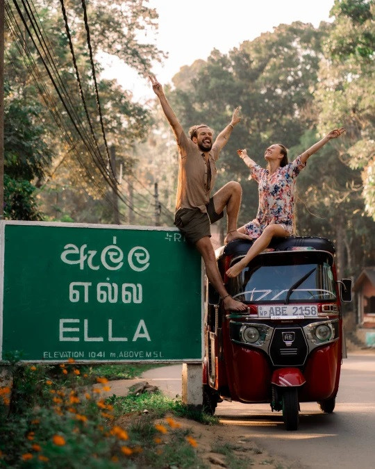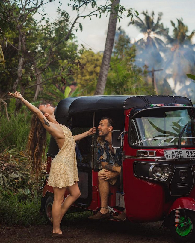 Ở Sri Lanka, Silke và Kieran kiếm tiền bằng cách lái xe tuk tuk (Ảnh: Kieran Shannon / SWNS)