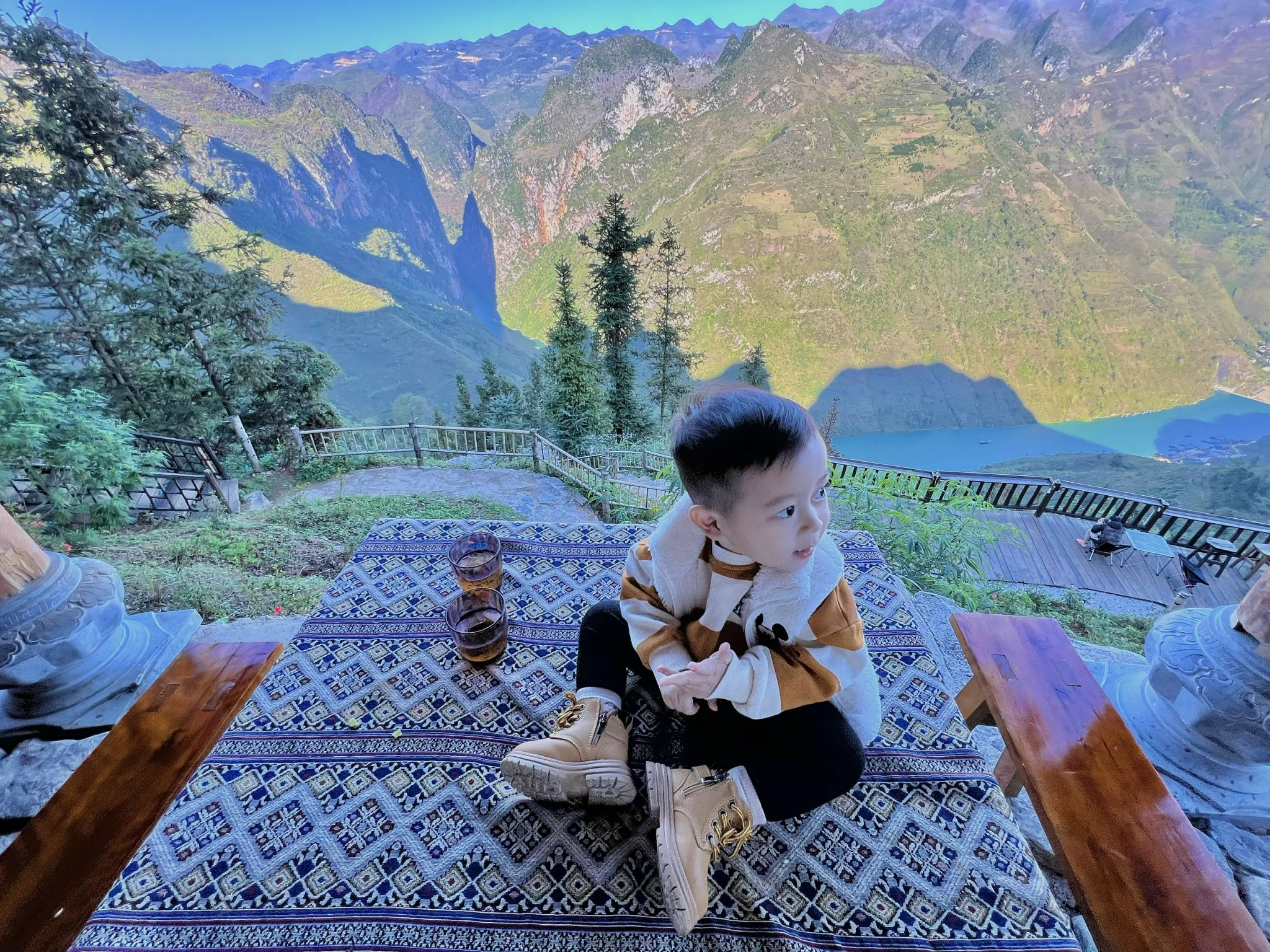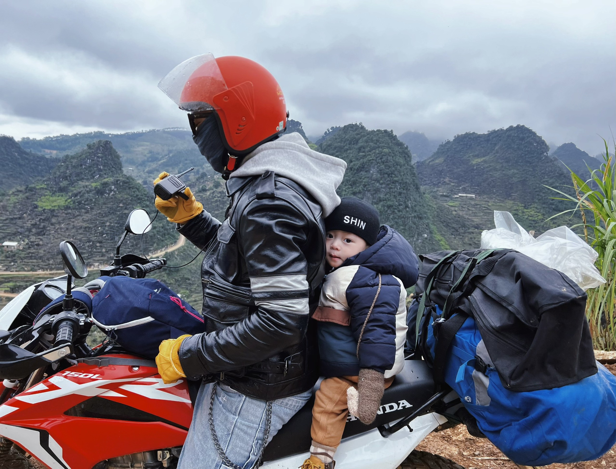 Từ khi 1 tuổi, bé Shin đã cùng bố mẹ đi Tà Xùa, Hang Táu, Ninh Bình nhưng chuyến Hà Giang 4 ngày 3 đêm này là chuyến đi xa nhất. Gia đình nhỏ đi xe giường nằm đến TP Hà Giang rồi lái xe máy lên thị trấn Đồng Văn, khám phá những điểm đến mới tại đây.