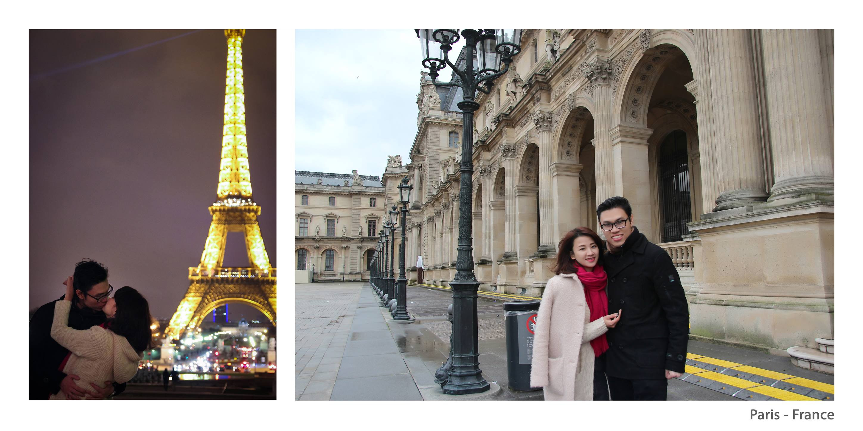 “Paris là nơi chúng mình hẹn nhau nhất định sẽ tới khi mới yêu và chúng mình làm được. Hy Lạp là nơi anh cầu hôn mình. Thuỵ Sĩ là chuyến đi cùng nhau đầu tiên sau khi dọn về chung một nhà. Tây Ban Nha và Bồ Đào Nha là chuyến đi kỉ niệm một năm ngày cưới. Trung Quốc là nơi mình, anh và em bé trong bụng cùng nhau leo Vạn Lý Trường Thành. Na Uy là chuyến xuất ngoại đầu tiên của em bé nhà. Áo là nơi gia đình có chuyến road trip đầu tiên”, chị Hạnh kể.