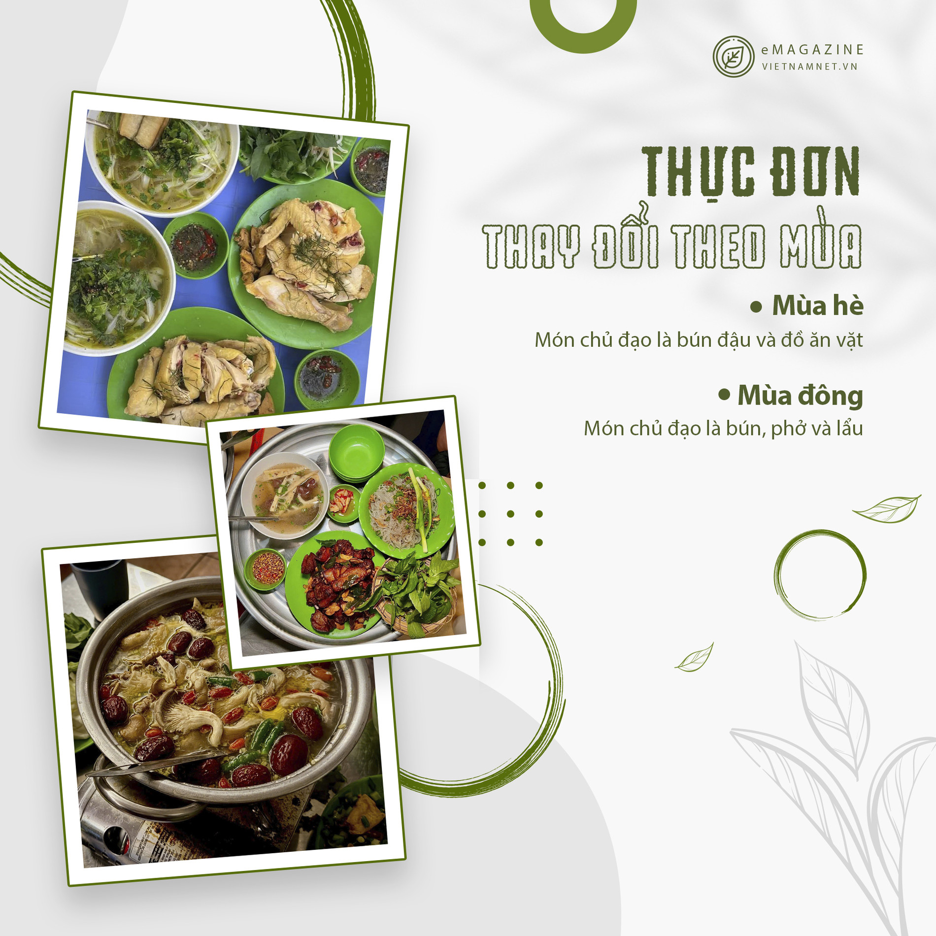 Hiện nay, thực đơn của quán được thay đổi theo mùa. Mùa hè (từ tháng 4 tới tháng 10), món chủ đạo là bún đậu và đồ ăn vặt. Mùa đông, thực đơn chính là bún, phở và lẩu. "Vợ chồng tôi đang có dự định phục vụ bún đậu suốt trong năm bởi ngay cả mùa đông, thực khách vẫn tìm kiếm món ăn này. Cộng đồng người Việt từ khắp nơi trên đất Mỹ khi tới New York đều mong muốn thưởng thức bún đậu mắm tôm", chị Nhung - chủ quán, chia sẻ.