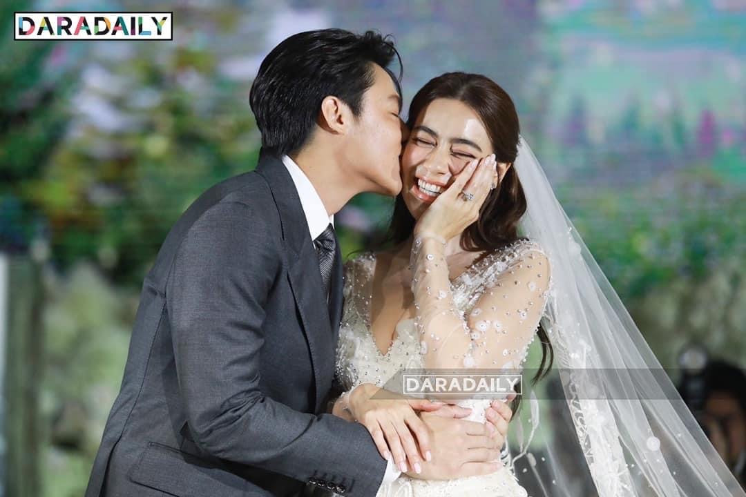 Cặp đôi cùng nhau chia sẻ cảm xúc hạnh phúc, bồi hồi trong ngày trọng đại trước giới truyền thông Thái Lan.