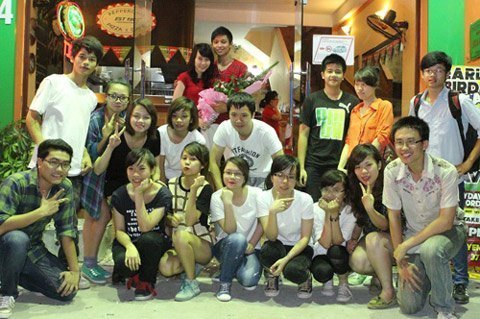 | Tất cả những bạn trẻ tham gia màn tỏ tình cùng nhau liên hoan. |