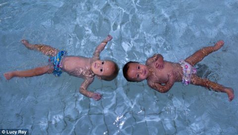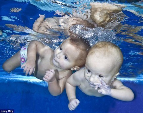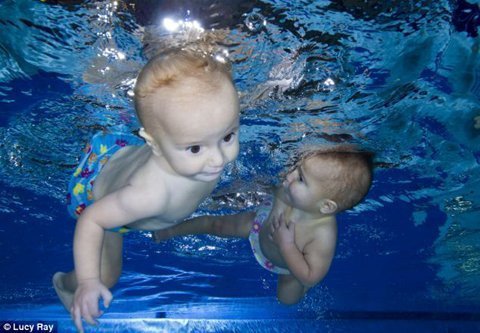 Và như hình chụp lại, hai em bé còn thậm chí cười khi đang bơi.