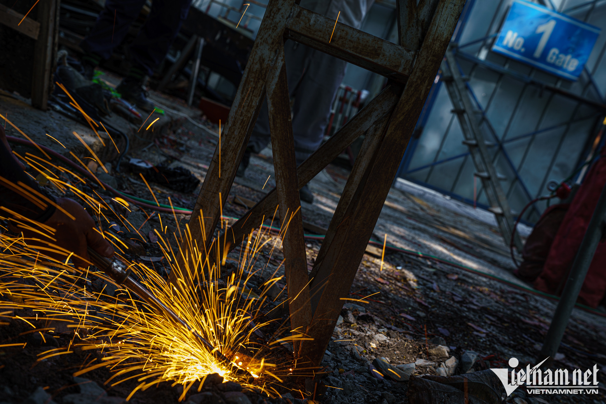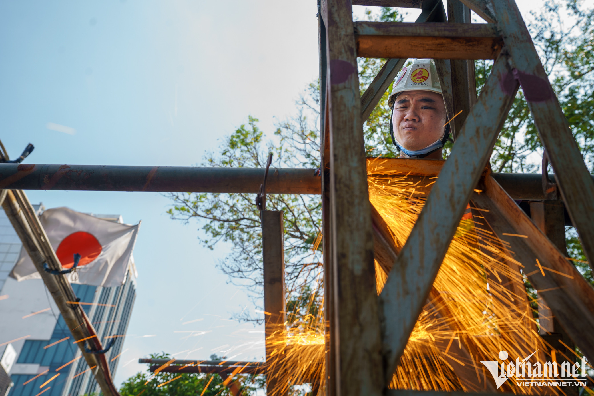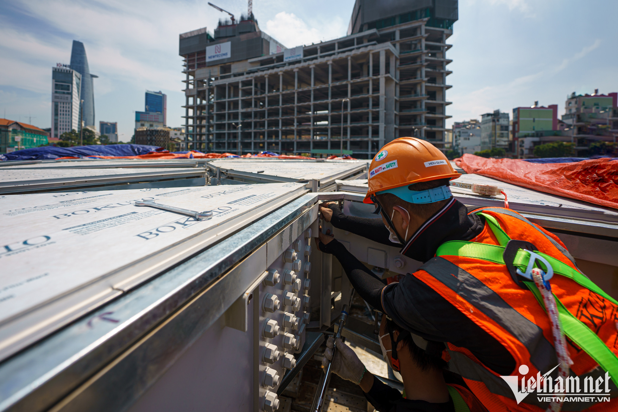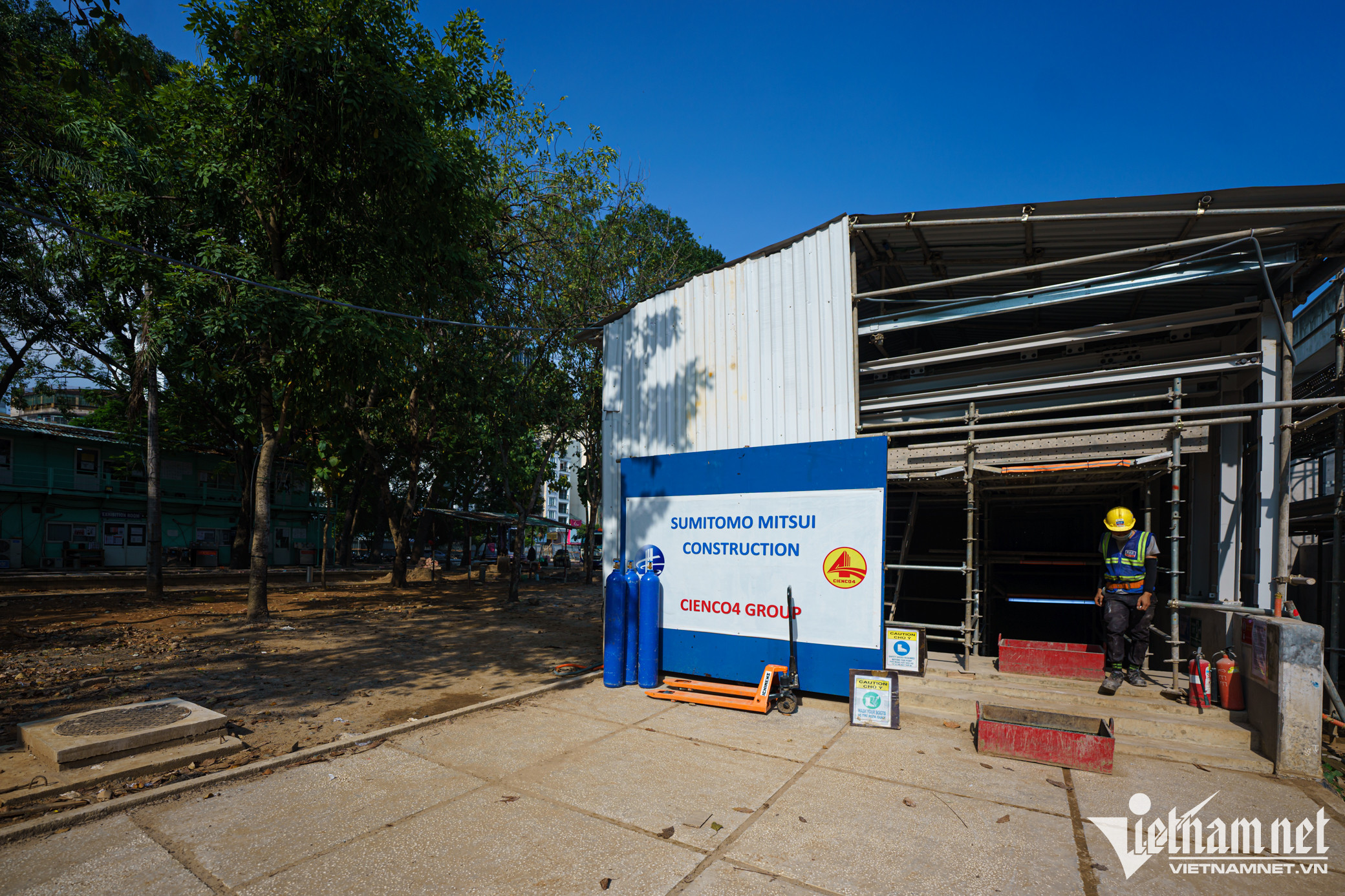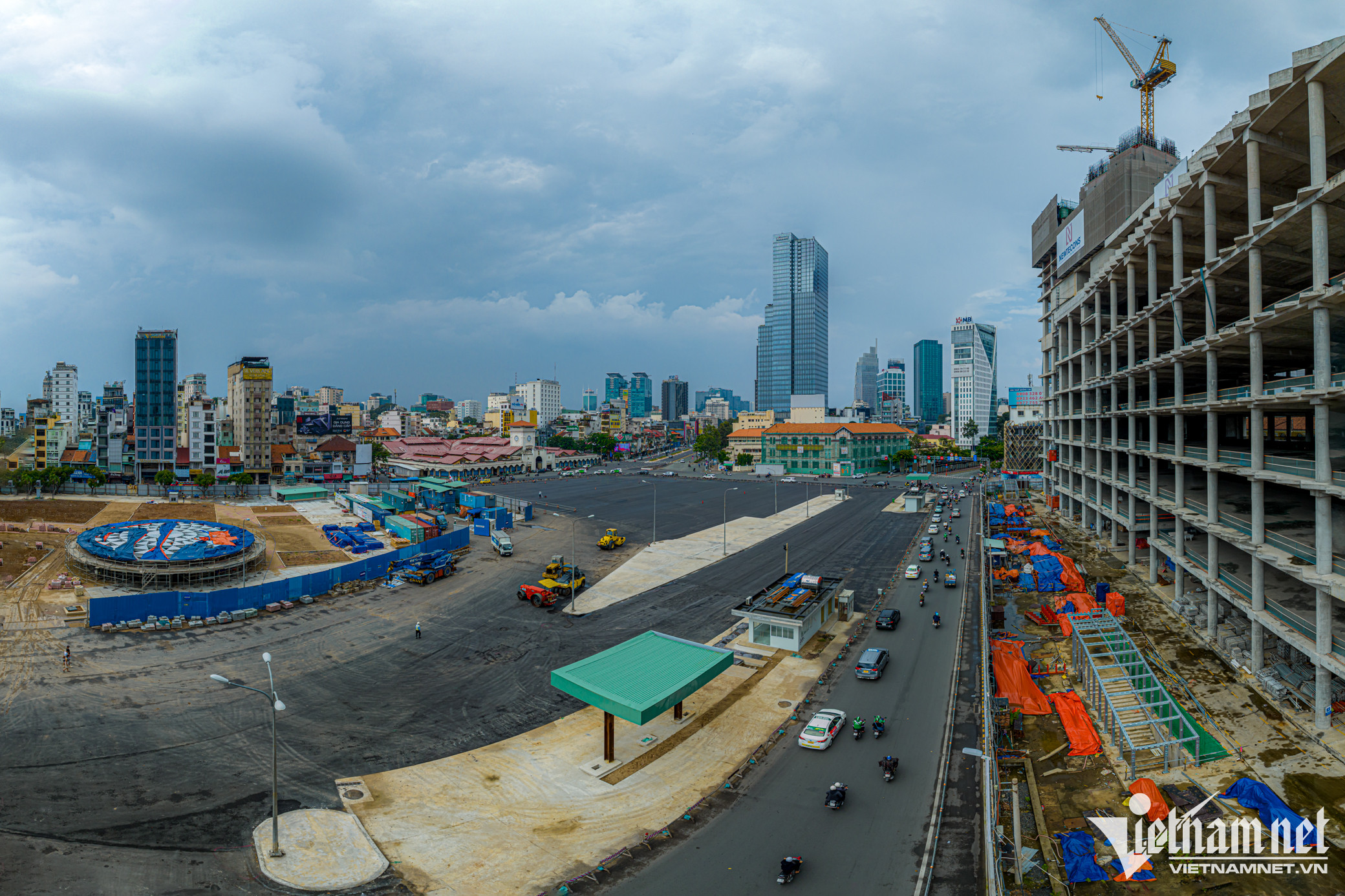 Hàng chục công nhân cùng xe lu, xe ủi và xe cẩu múc tất bật làm việc. Đơn vị thi công đang hình thành nền gạch, xây bồn cỏ, bồn cây,... Sau khi hoàn thiện phần cấu trúc, Công ty Công viên cây xanh TP.HCM sẽ tiến hành trồng lại 75 cây bị bứng và trải thảm cỏ, tạo mảng xanh thực vật. Cổng số 1 của công trường trên đường Lê Lai (quận 1) đã khóa chặt, mở lối đi khác cách đó 100m tại đoạn đã hoàn thiện phần vỉa hè thảm đá sỏi.